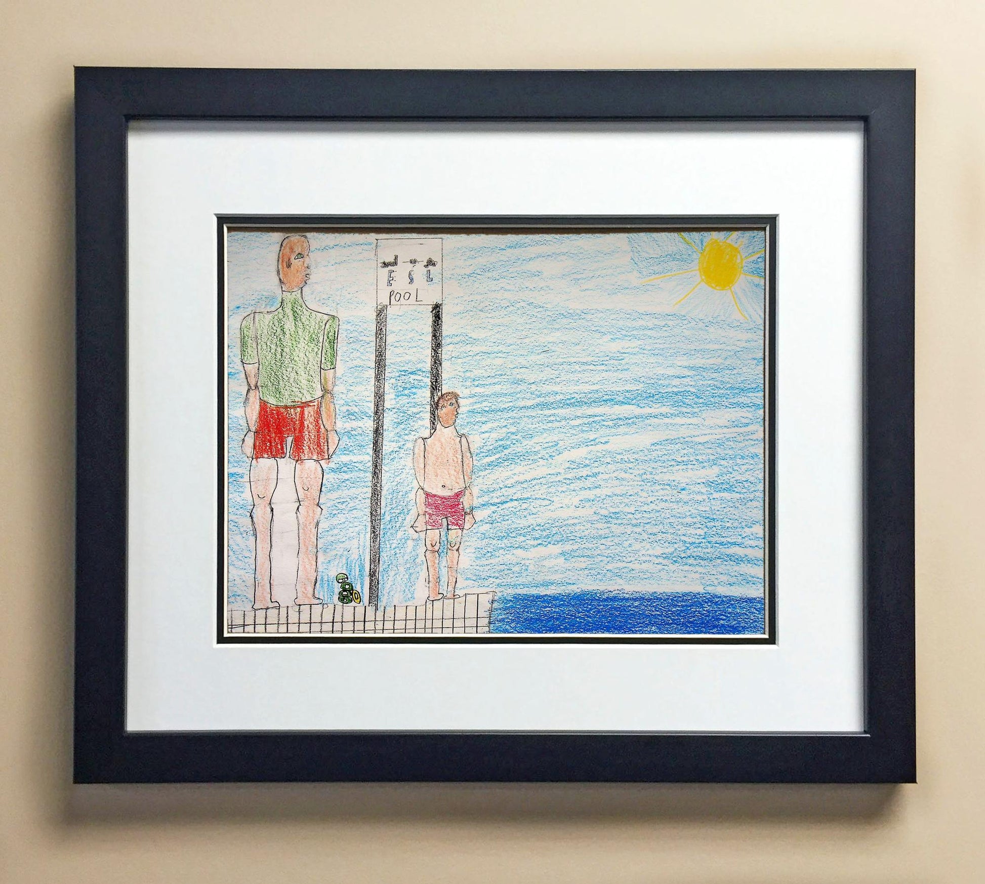 Included with the purchase is the Students Artwork, Frame, double matboard, shatter proof plexiglass, and a ready to hang backerboard with turnbuttons