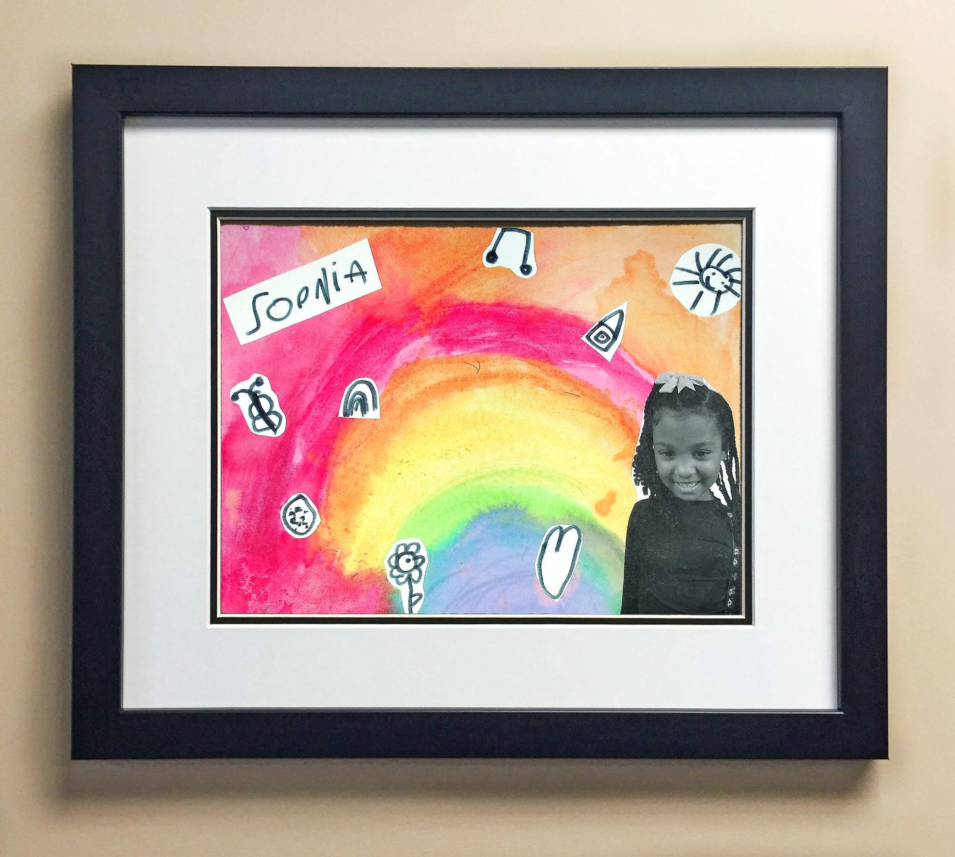 Included with the purchase is the Students Artwork, Frame, double matboard, shatter proof plexiglass, and a ready to hang backerboard with turnbuttons