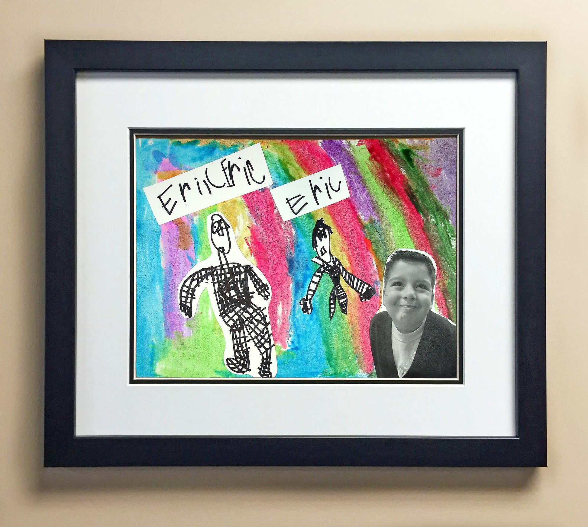 Included with the purchase is the Students Artwork, Frame, double matboard, shatter proof plexiglass, and a ready to hang backerboard with turnbuttons