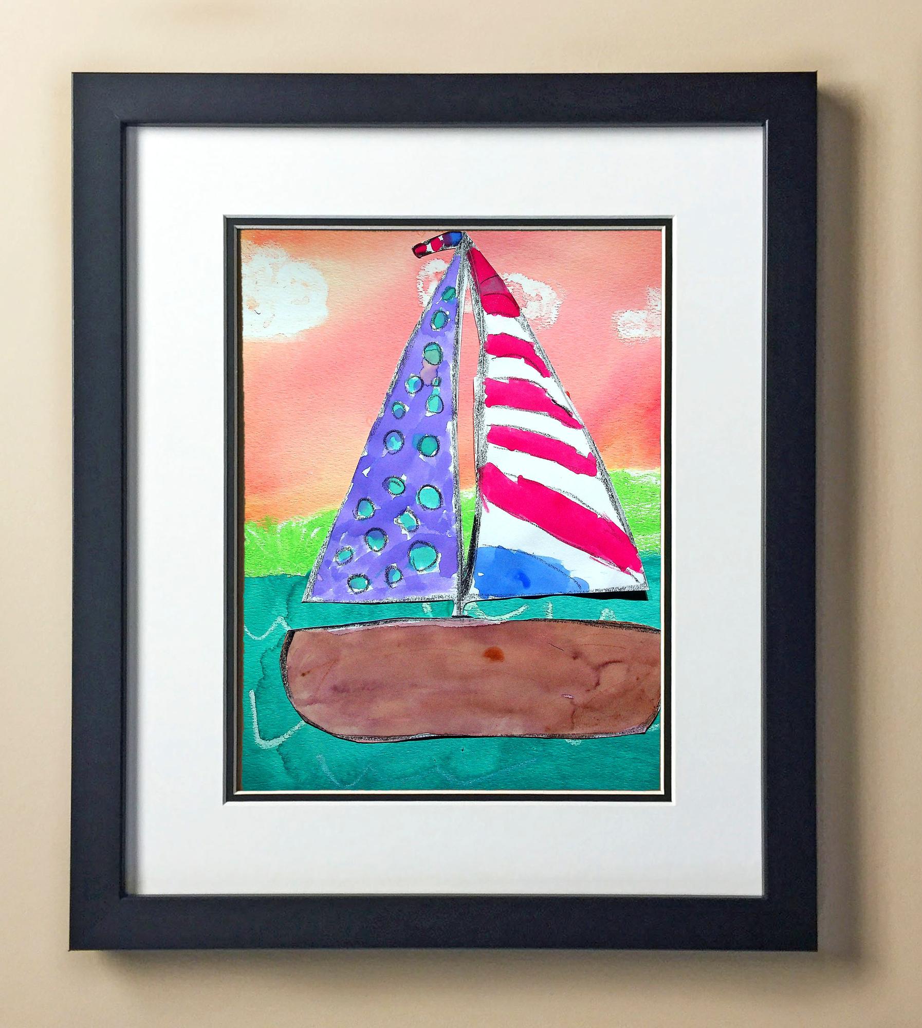 Included with the purchase is the Students Artwork, Frame, double matboard, shatter proof plexiglass, and a ready to hang backerboard with turnbuttons