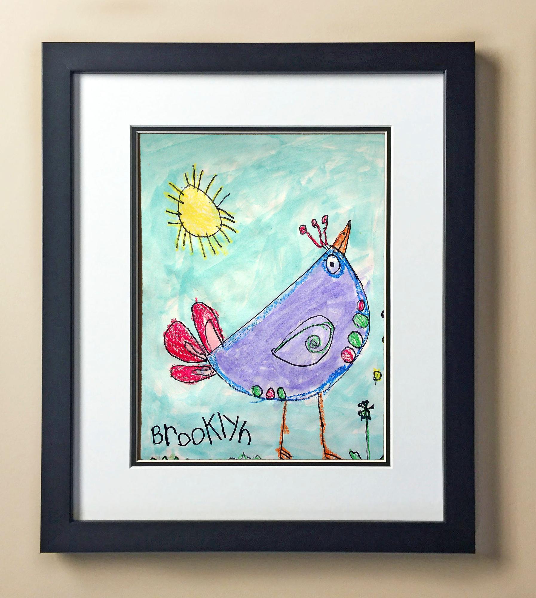 Included with the purchase is the Students Artwork, Frame, double matboard, shatter proof plexiglass, and a ready to hang backerboard with turnbuttons