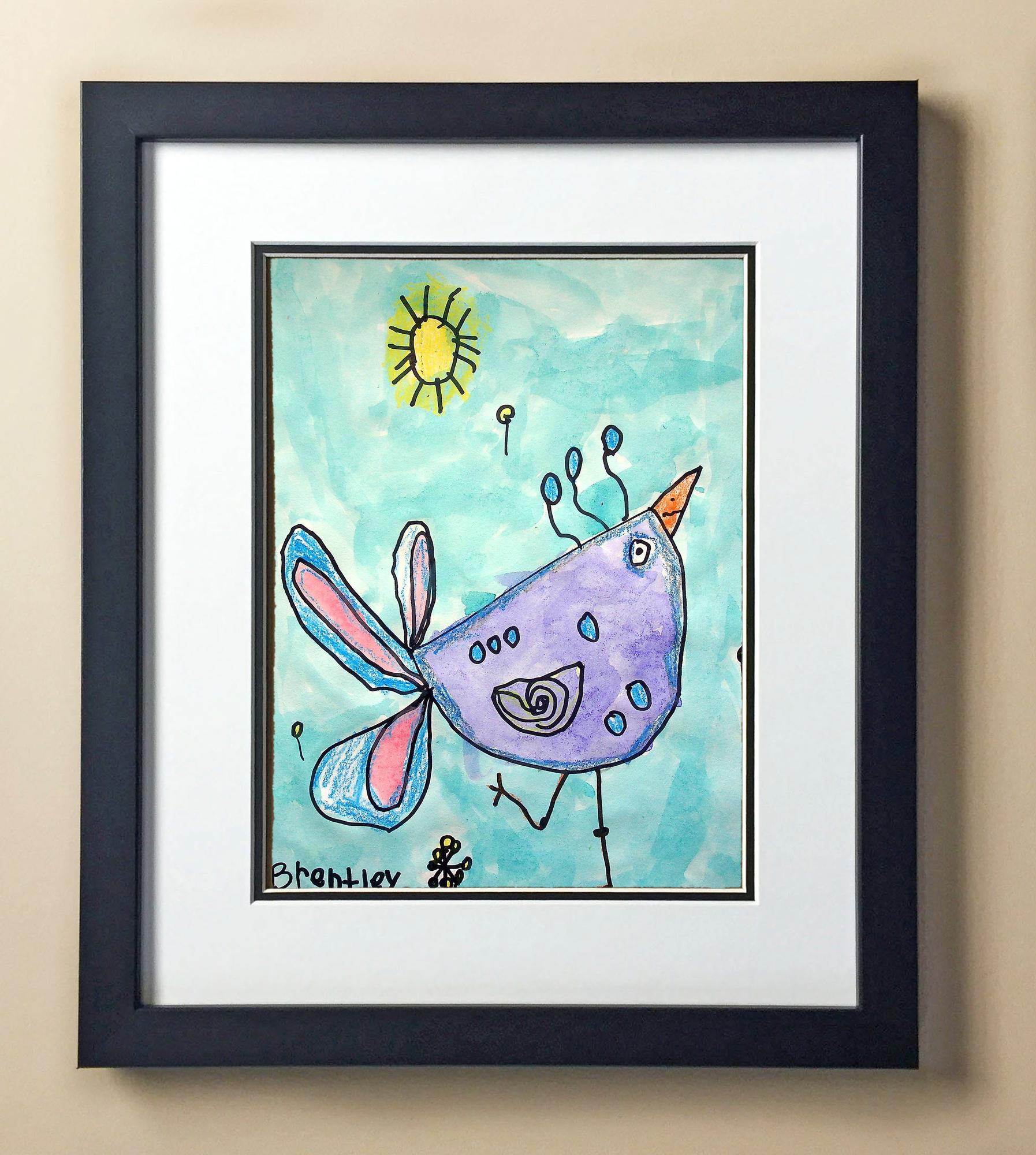 Included with the purchase is the Students Artwork, Frame, double matboard, shatter proof plexiglass, and a ready to hang backerboard with turnbuttons