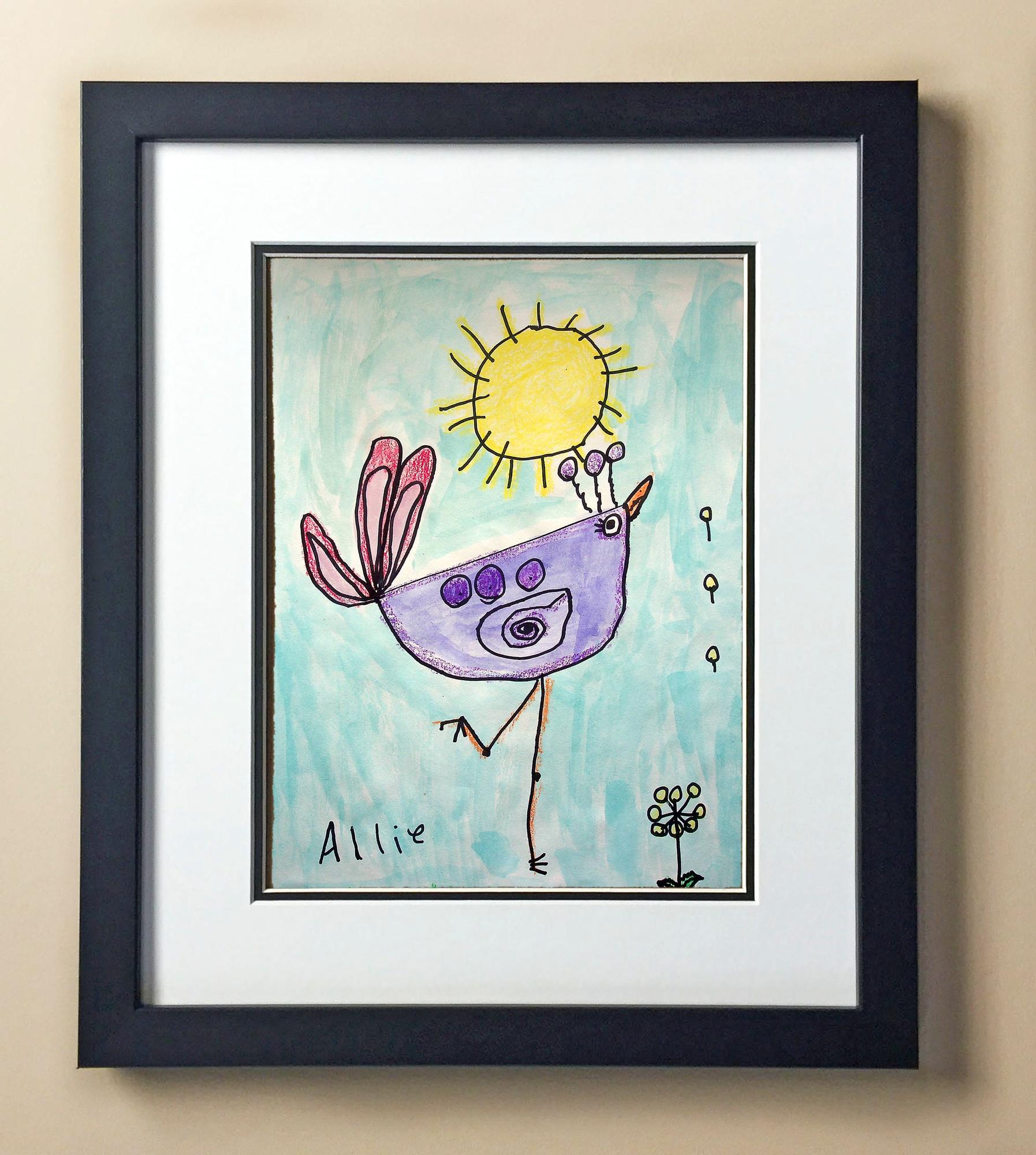 Included with the purchase is the Students Artwork, Frame, double matboard, shatter proof plexiglass, and a ready to hang backerboard with turnbuttons