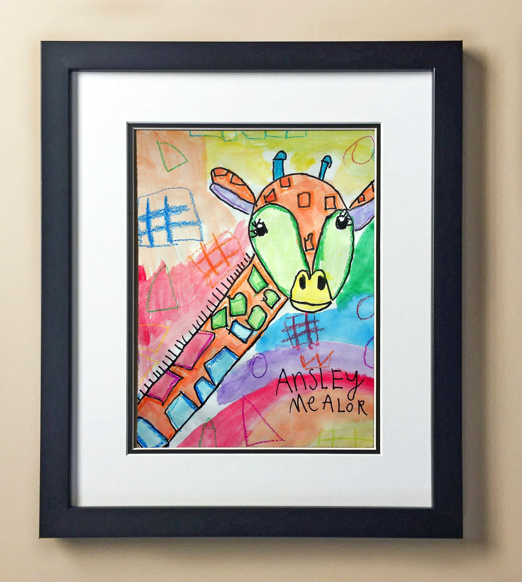 Included with the purchase is the Students Artwork, Frame, double matboard, shatter proof plexiglass, and a ready to hang backerboard with turnbuttons