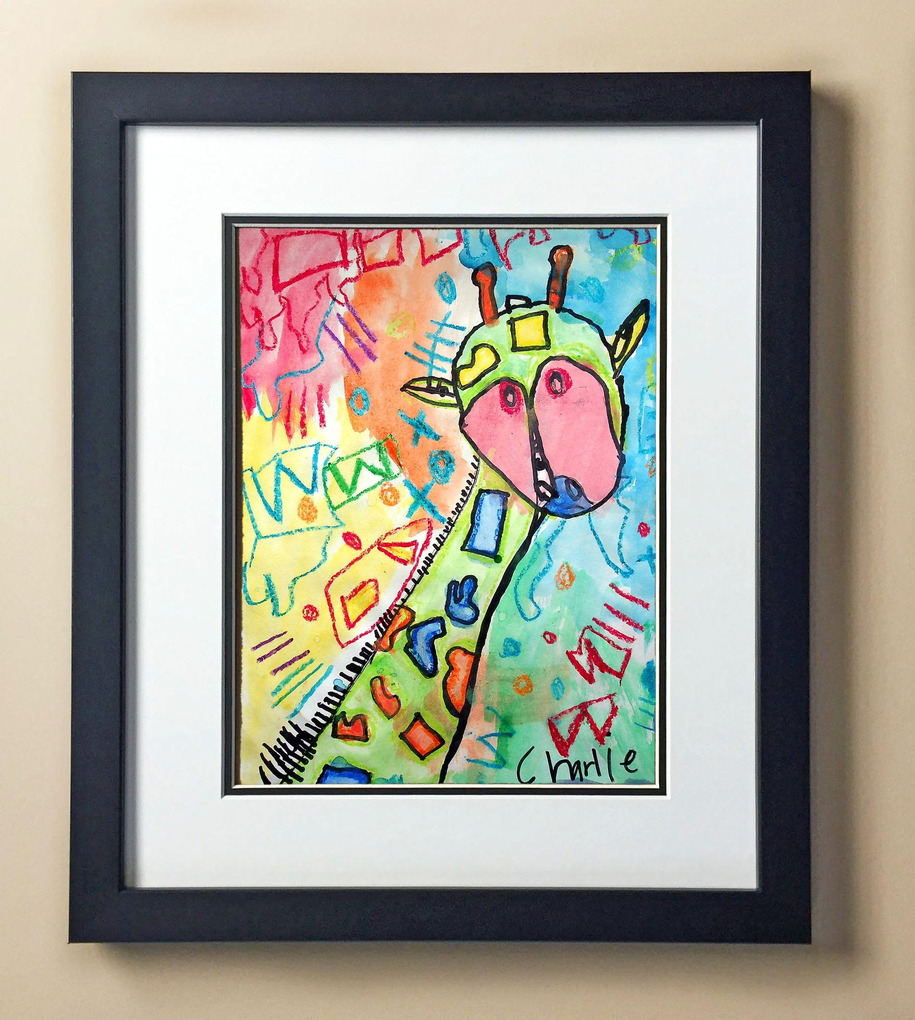 Included with the purchase is the Students Artwork, Frame, double matboard, shatter proof plexiglass, and a ready to hang backerboard with turnbuttons