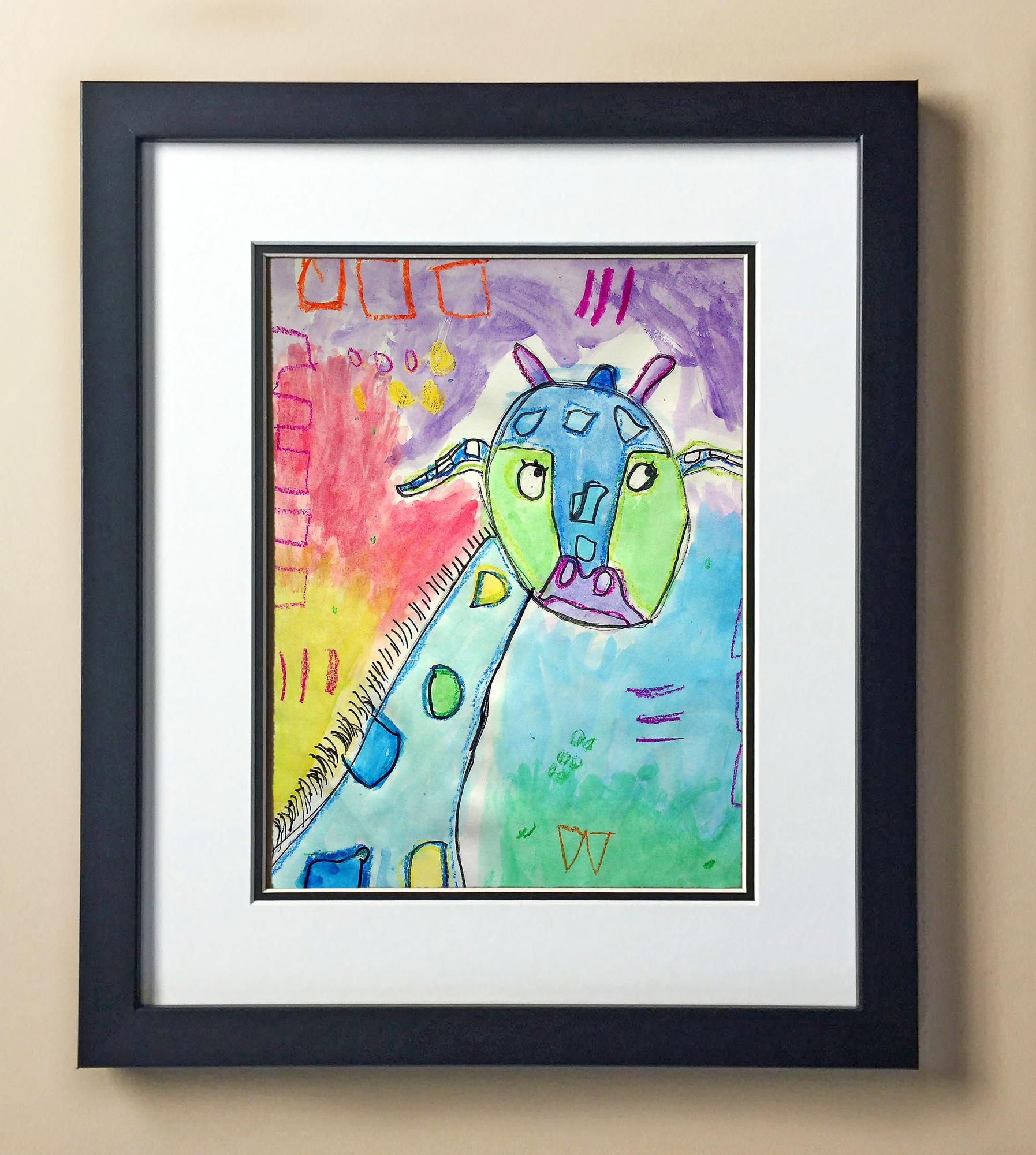 Included with the purchase is the Students Artwork, Frame, double matboard, shatter proof plexiglass, and a ready to hang backerboard with turnbuttons