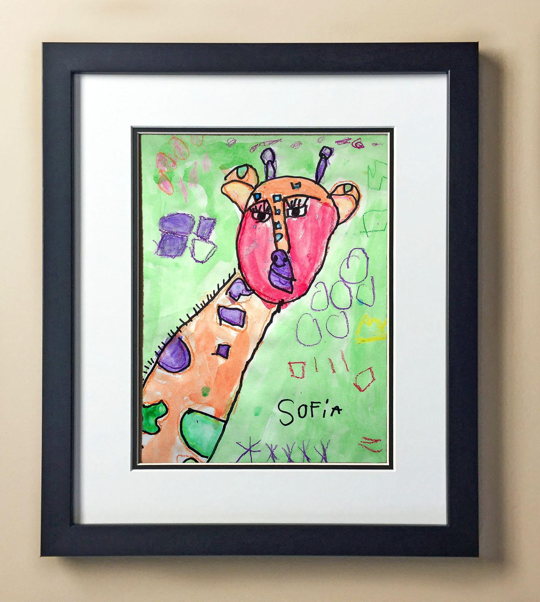 Included with the purchase is the Students Artwork, Frame, double matboard, shatter proof plexiglass, and a ready to hang backerboard with turnbuttons