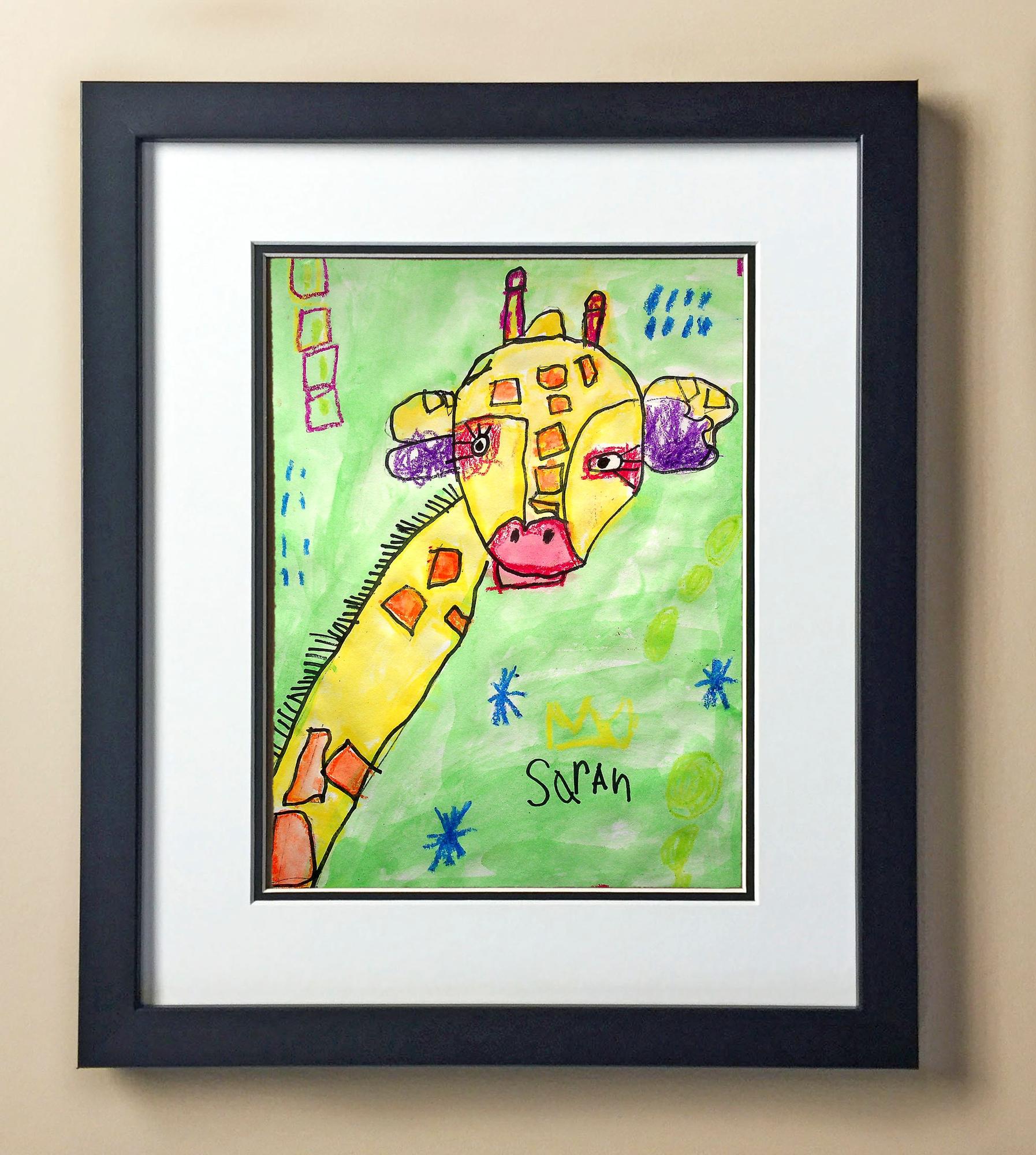 Included with the purchase is the Students Artwork, Frame, double matboard, shatter proof plexiglass, and a ready to hang backerboard with turnbuttons