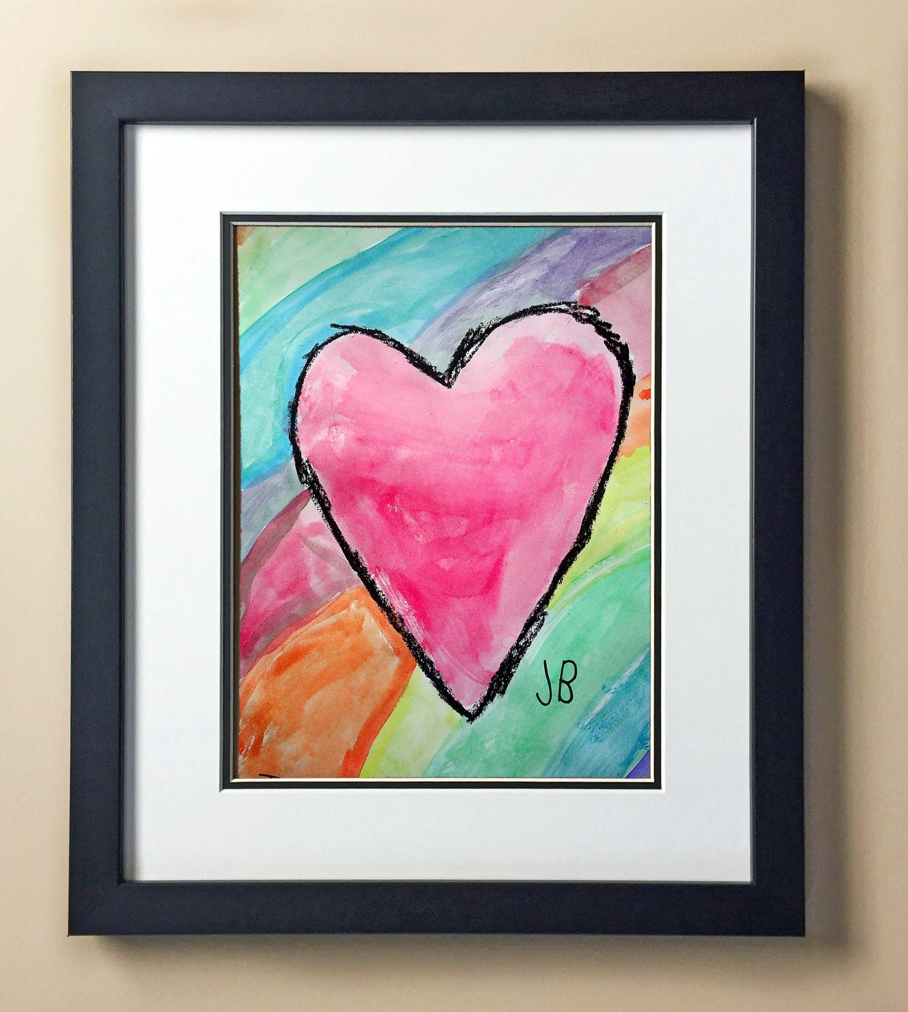 Included with the purchase is the Students Artwork, Frame, double matboard, shatter proof plexiglass, and a ready to hang backerboard with turnbuttons