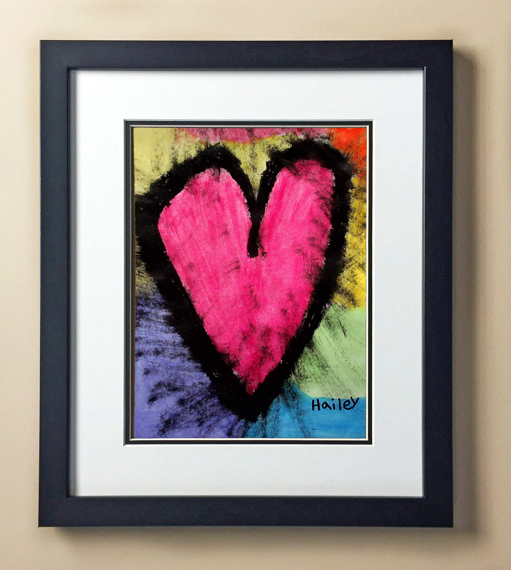 Included with the purchase is the Students Artwork, Frame, double matboard, shatter proof plexiglass, and a ready to hang backerboard with turnbuttons