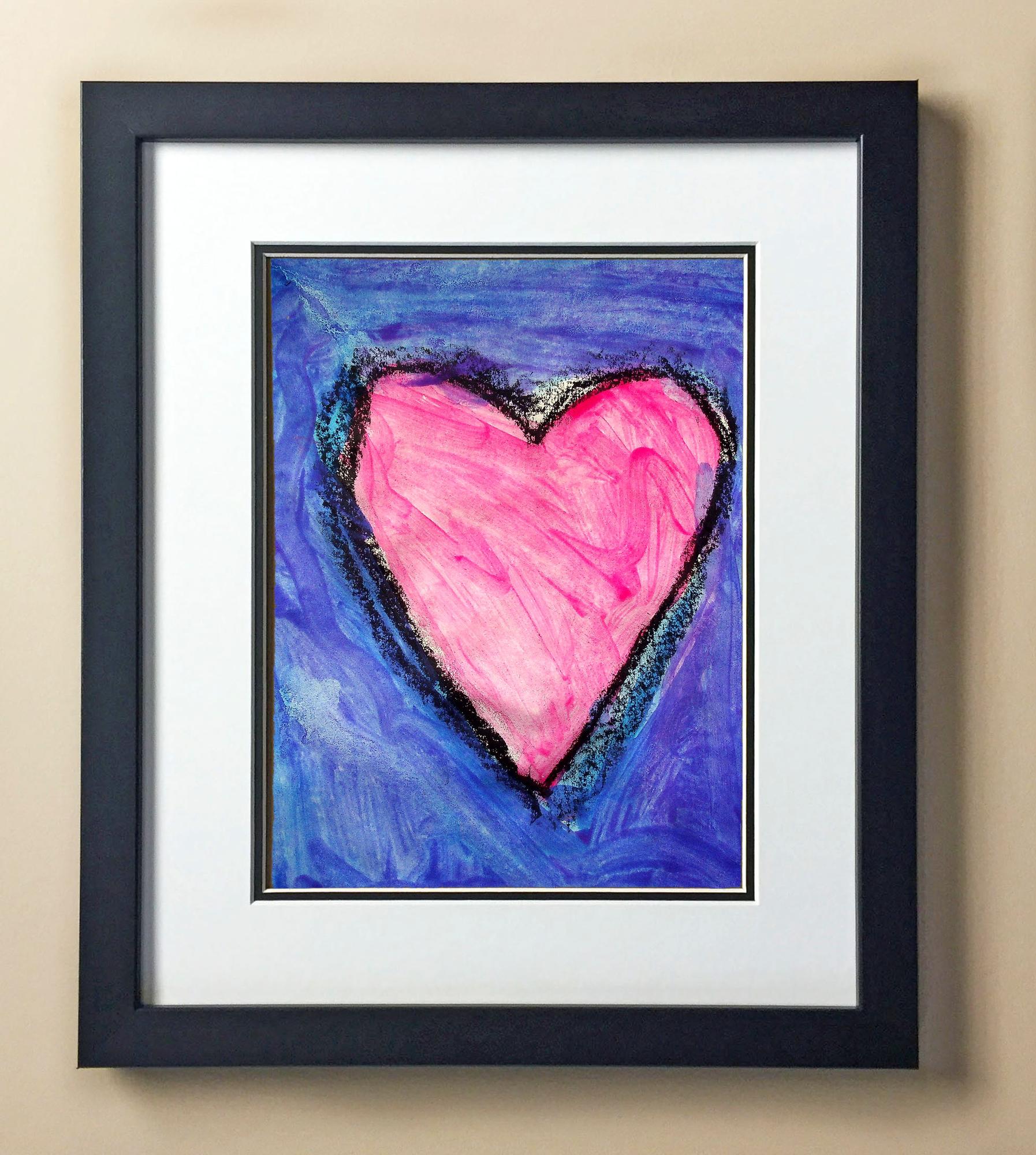 Included with the purchase is the Students Artwork, Frame, double matboard, shatter proof plexiglass, and a ready to hang backerboard with turnbuttons
