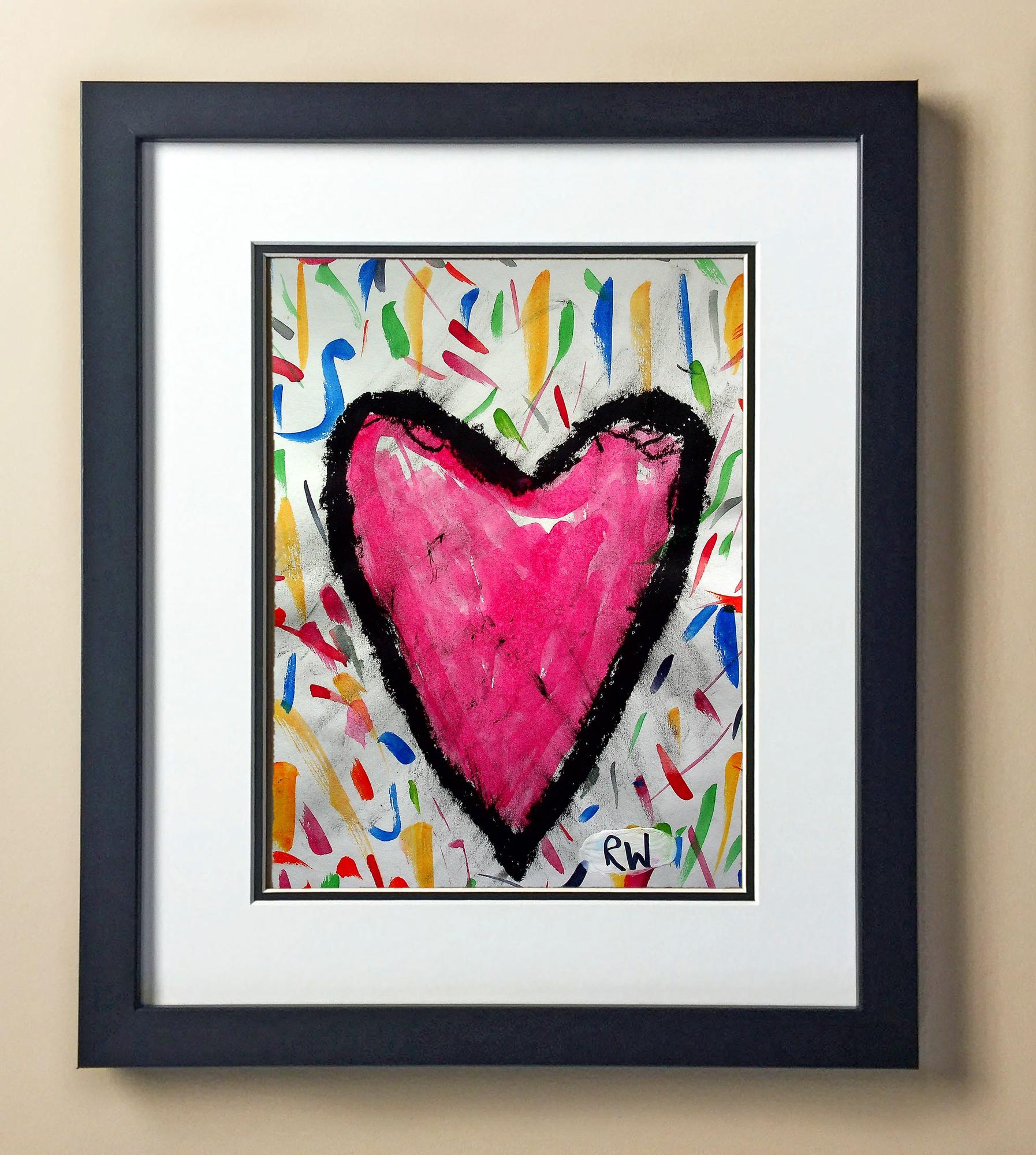 Included with the purchase is the Students Artwork, Frame, double matboard, shatter proof plexiglass, and a ready to hang backerboard with turnbuttons