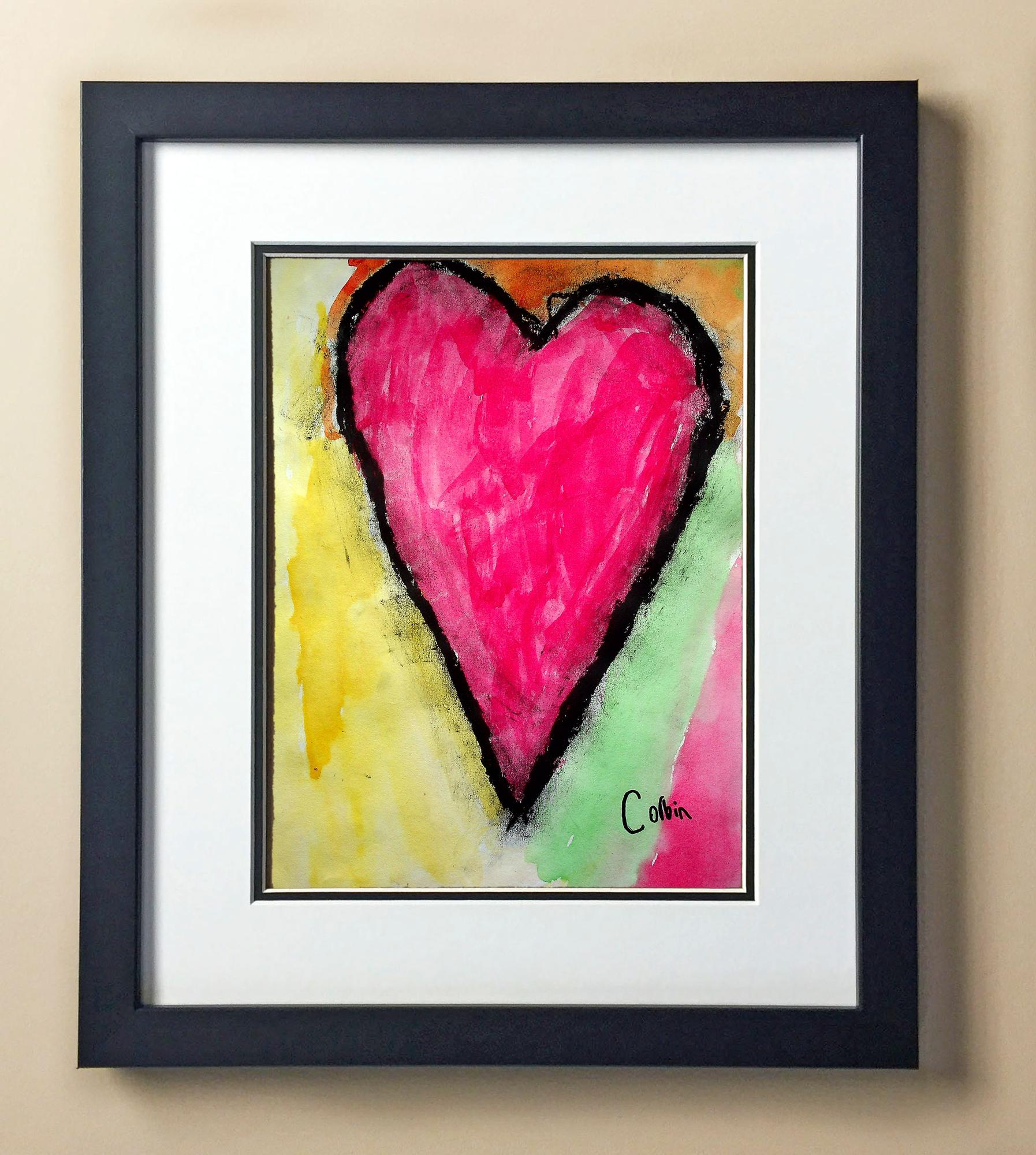Included with the purchase is the Students Artwork, Frame, double matboard, shatter proof plexiglass, and a ready to hang backerboard with turnbuttons