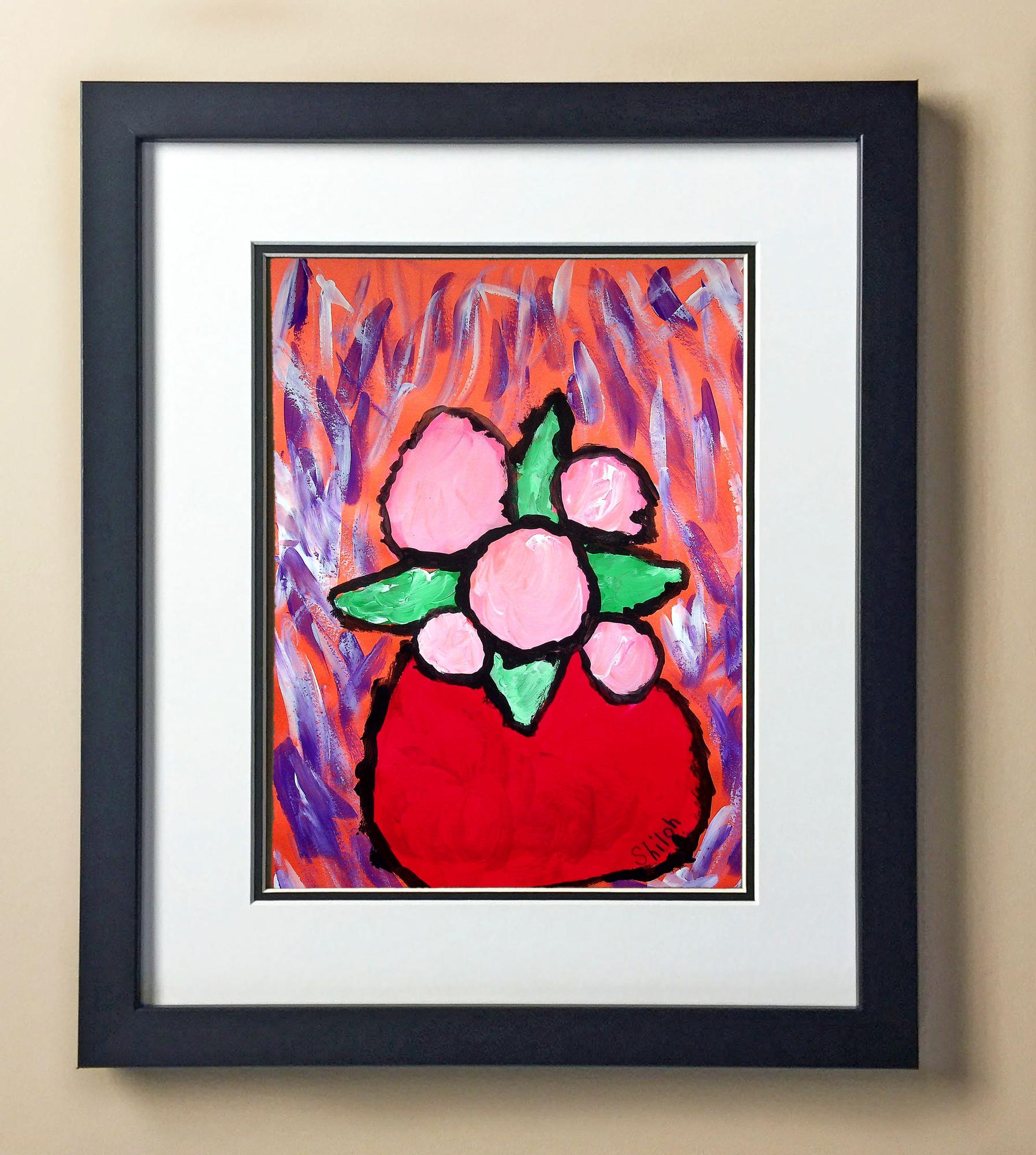 Included with the purchase is the Students Artwork, Frame, double matboard, shatter proof plexiglass, and a ready to hang backerboard with turnbuttons