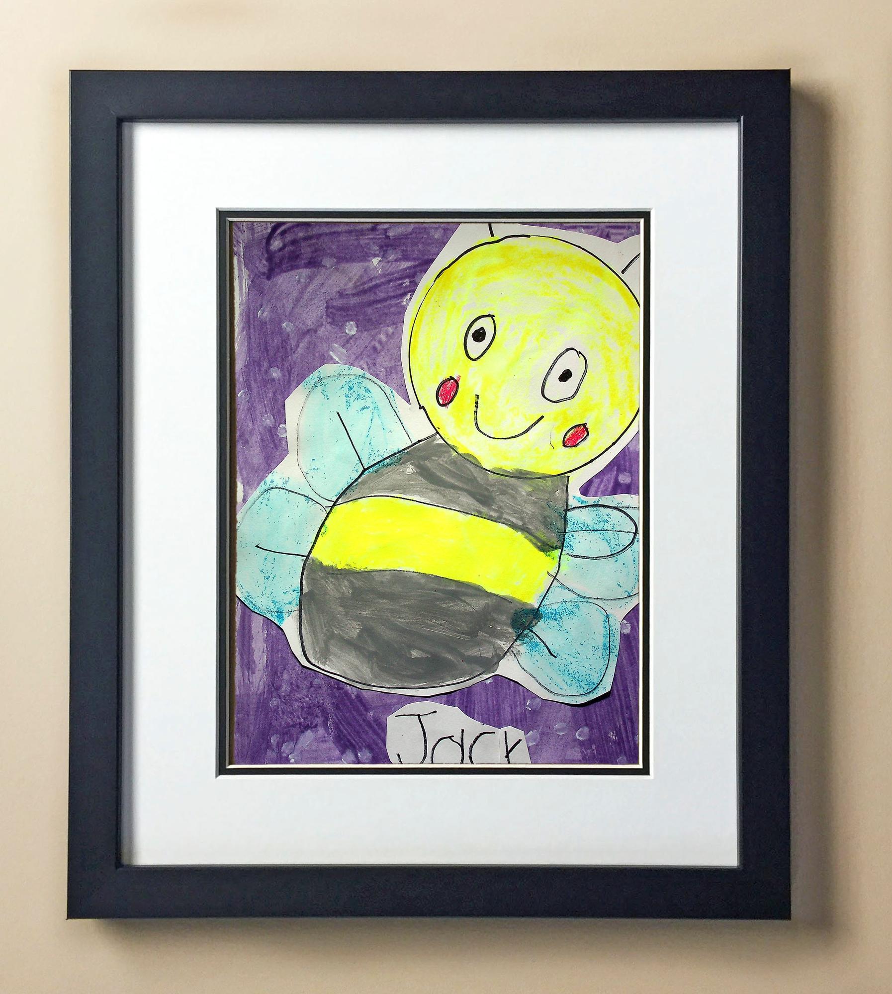 Included with the purchase is the Students Artwork, Frame, double matboard, shatter proof plexiglass, and a ready to hang backerboard with turnbuttons