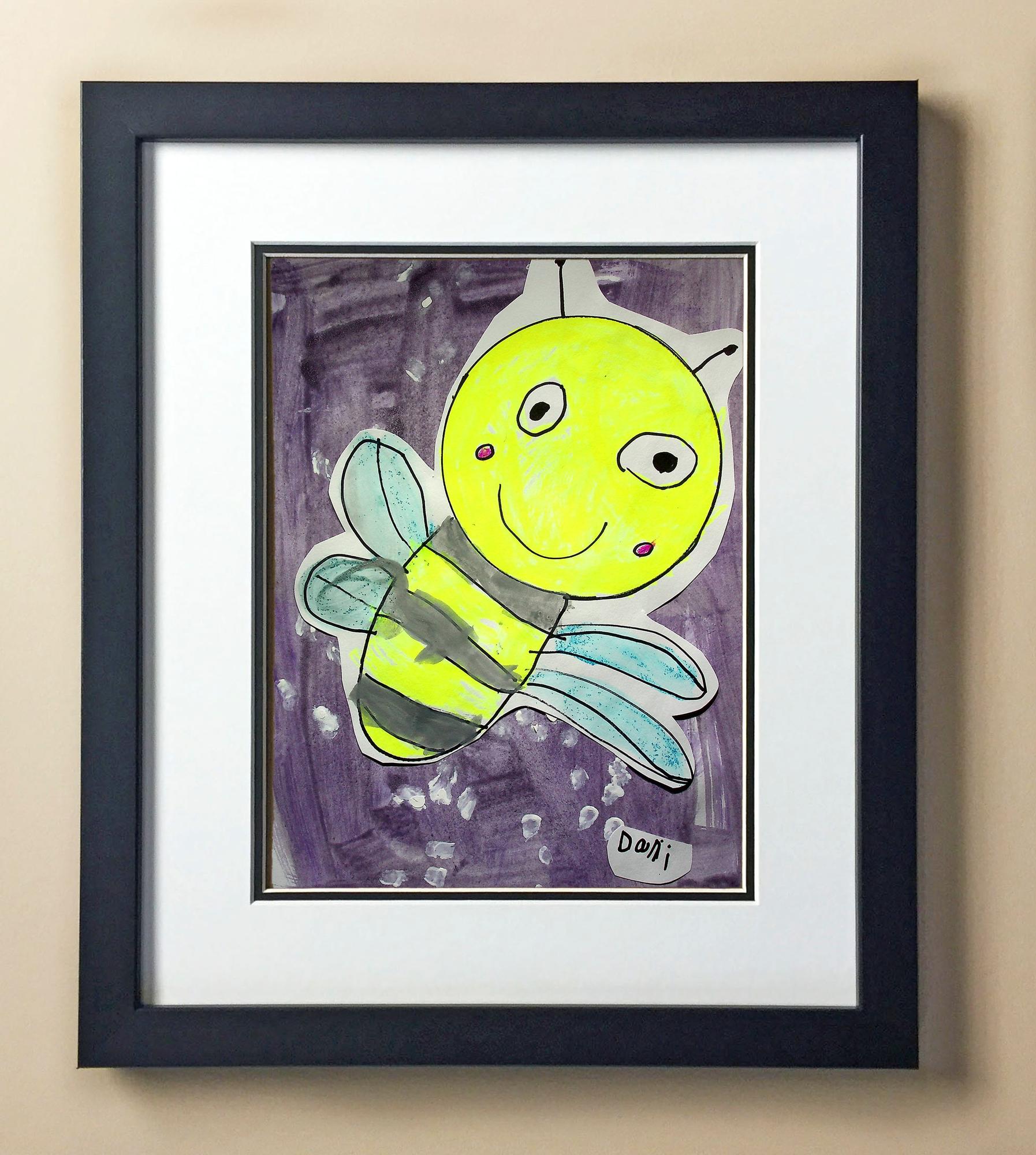 Included with the purchase is the Students Artwork, Frame, double matboard, shatter proof plexiglass, and a ready to hang backerboard with turnbuttons