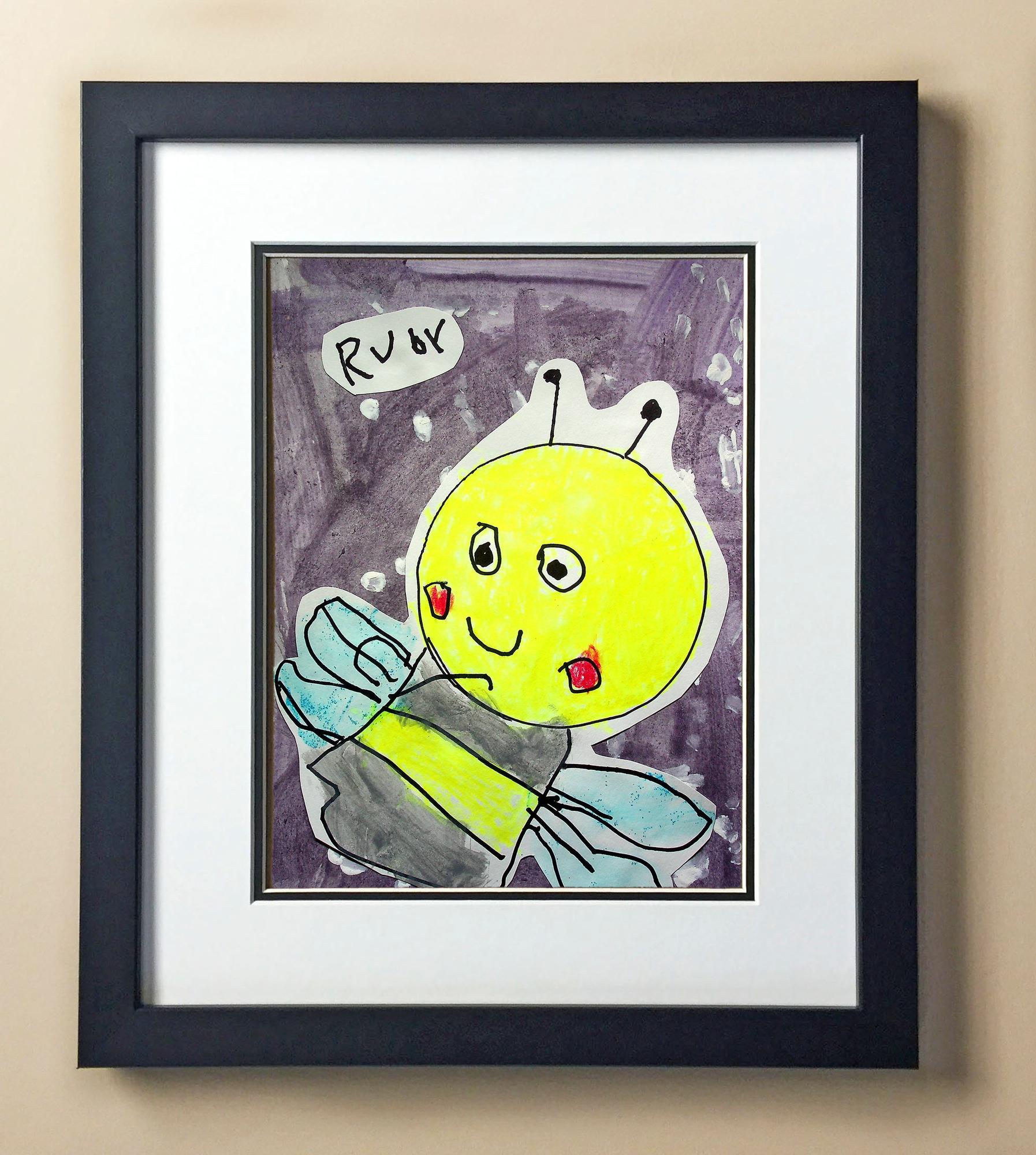 Included with the purchase is the Students Artwork, Frame, double matboard, shatter proof plexiglass, and a ready to hang backerboard with turnbuttons