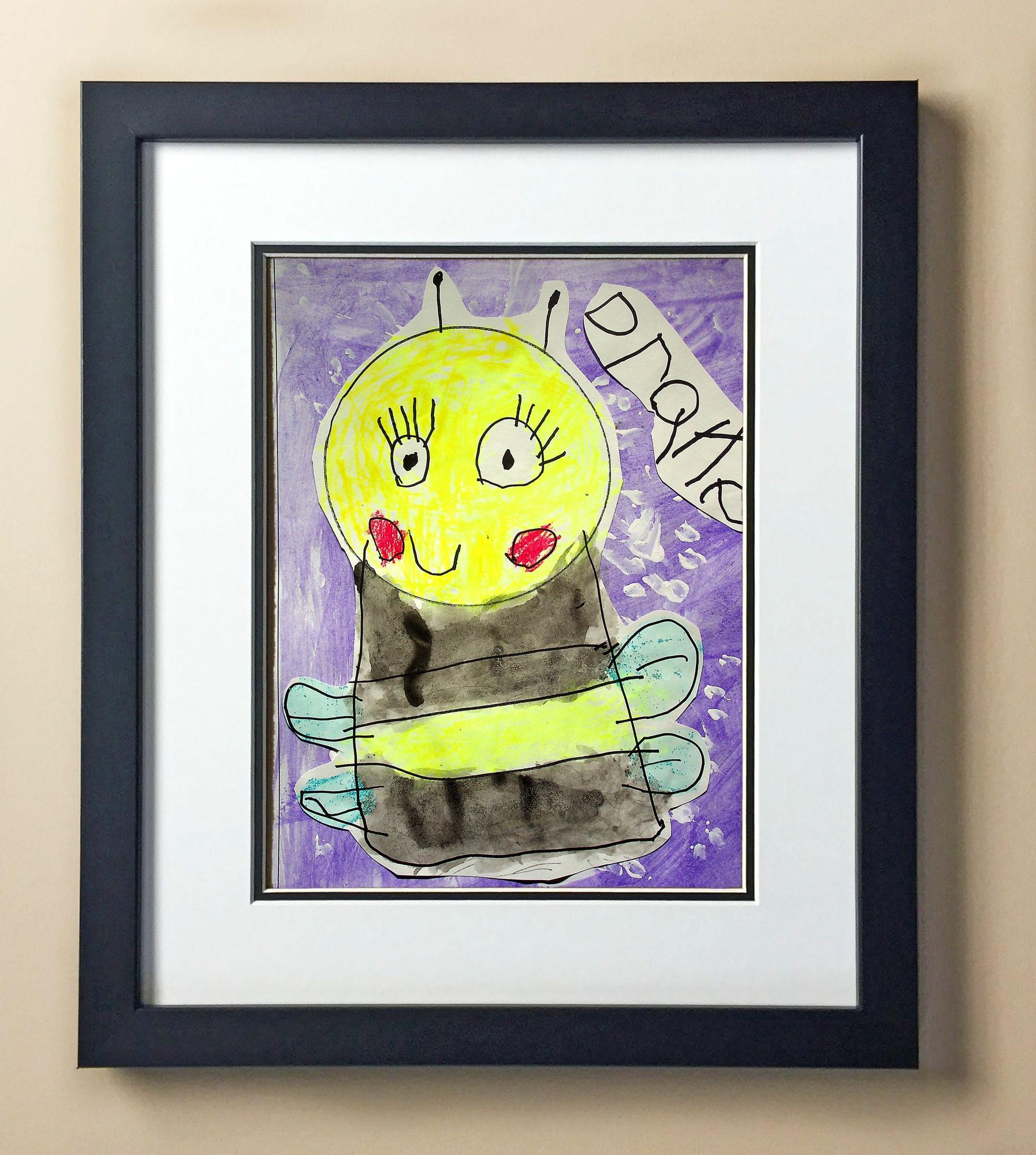 Included with the purchase is the Students Artwork, Frame, double matboard, shatter proof plexiglass, and a ready to hang backerboard with turnbuttons