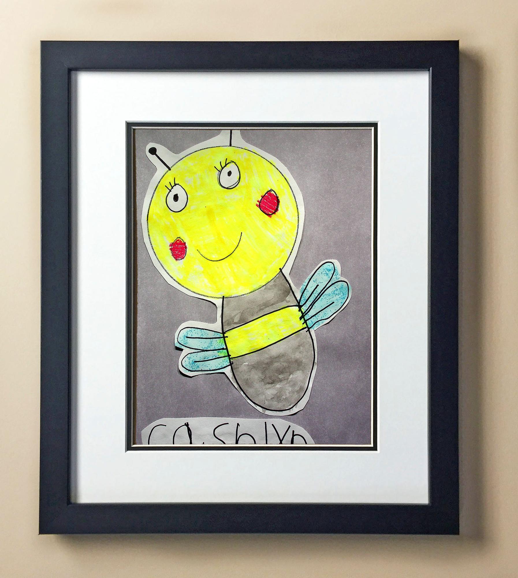 Included with the purchase is the Students Artwork, Frame, double matboard, shatter proof plexiglass, and a ready to hang backerboard with turnbuttons