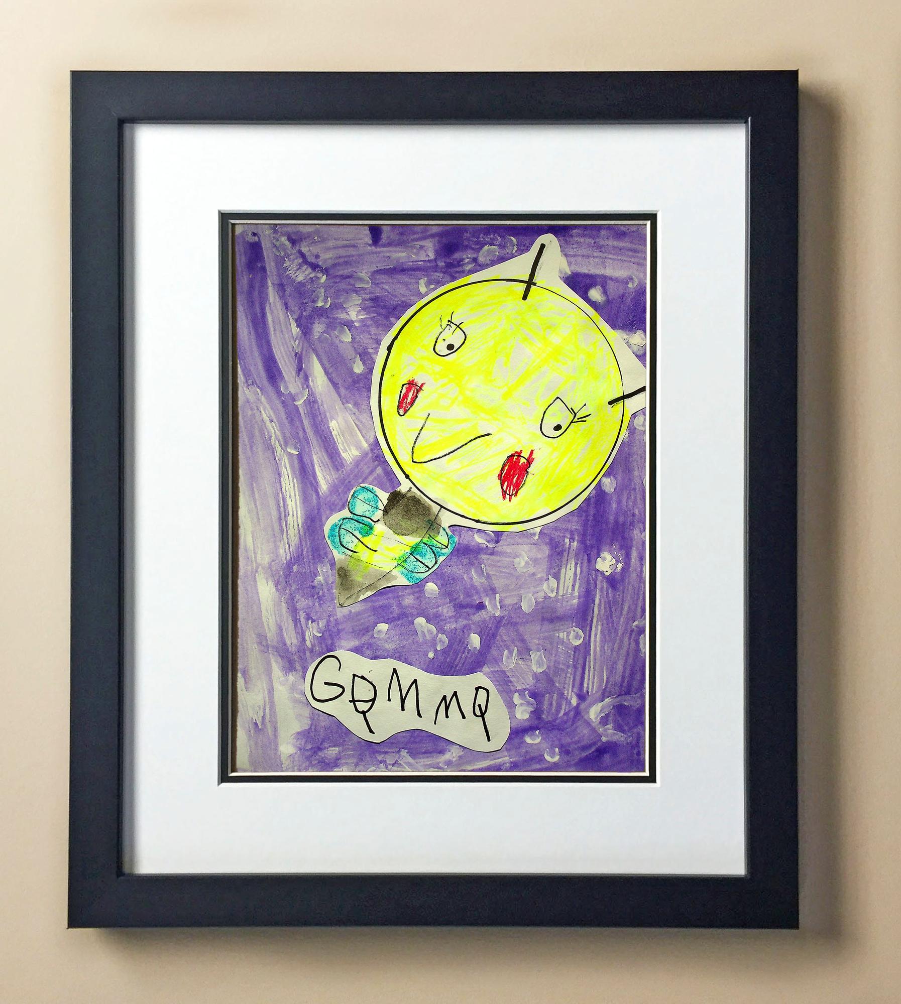 Included with the purchase is the Students Artwork, Frame, double matboard, shatter proof plexiglass, and a ready to hang backerboard with turnbuttons