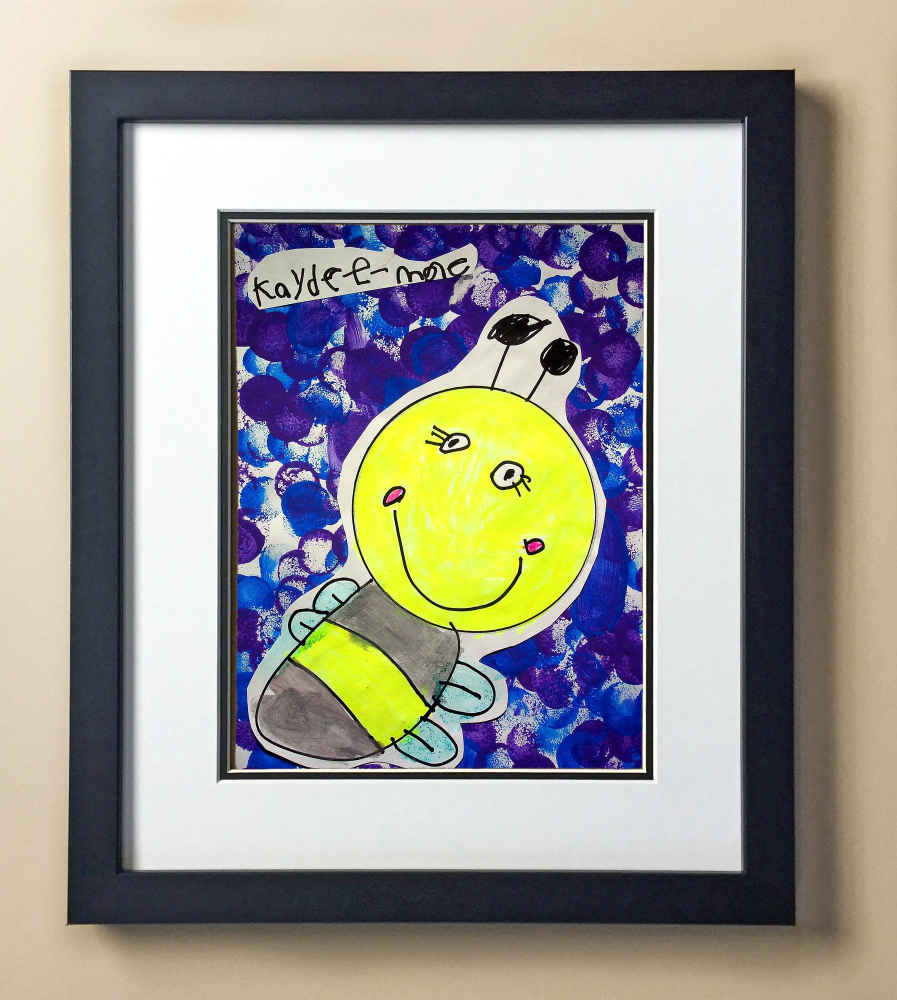 Included with the purchase is the Students Artwork, Frame, double matboard, shatter proof plexiglass, and a ready to hang backerboard with turnbuttons