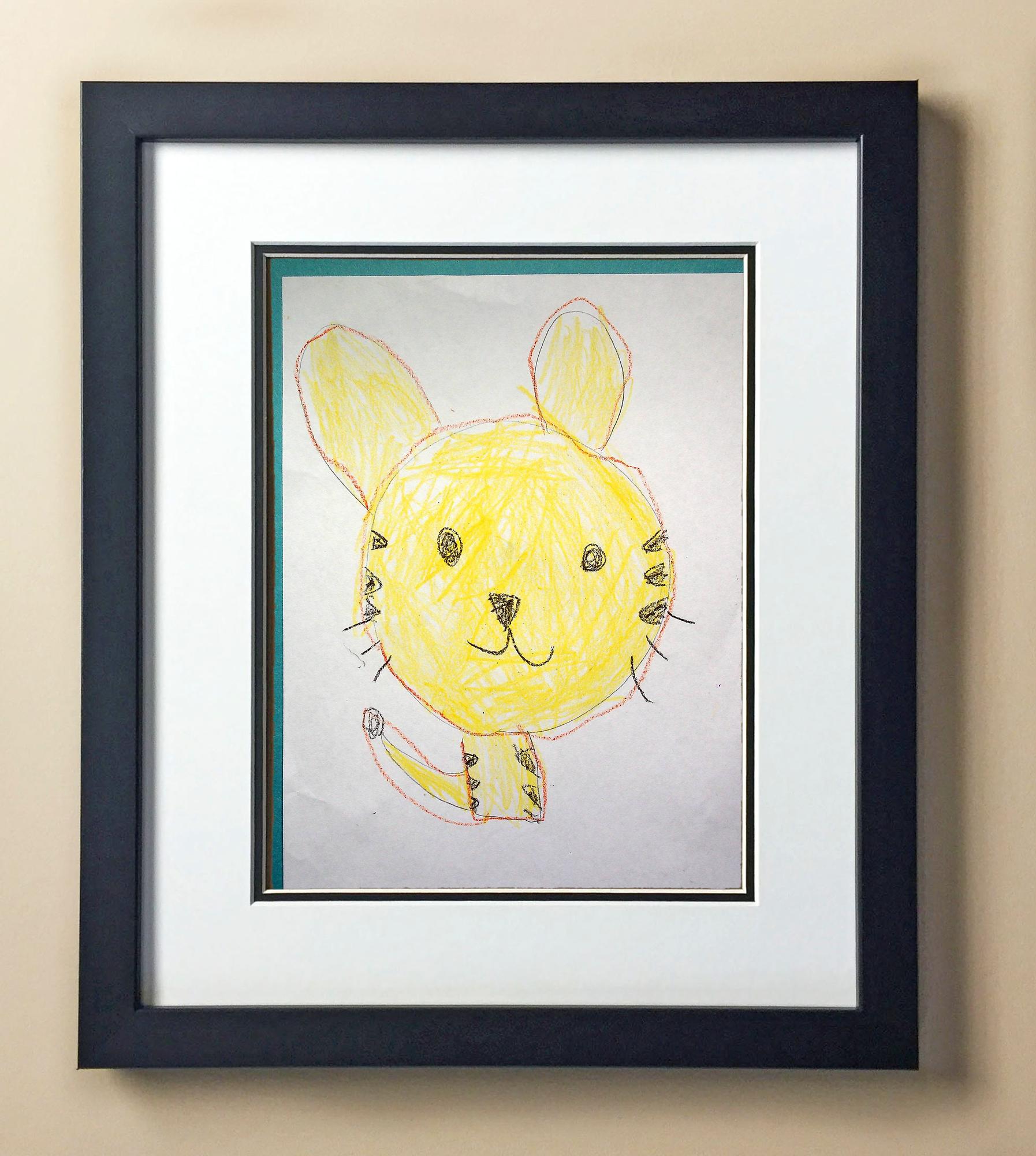 Included with the purchase is the Students Artwork, Frame, double matboard, shatter proof plexiglass, and a ready to hang backerboard with turnbuttons