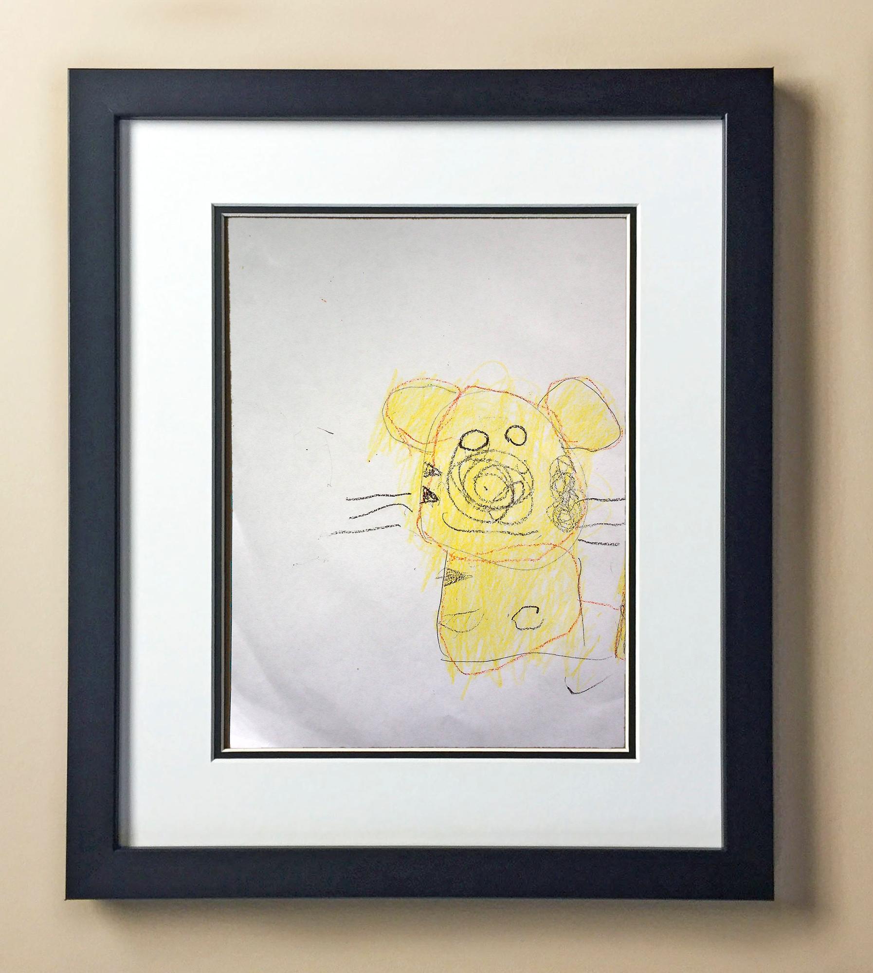 Included with the purchase is the Students Artwork, Frame, double matboard, shatter proof plexiglass, and a ready to hang backerboard with turnbuttons