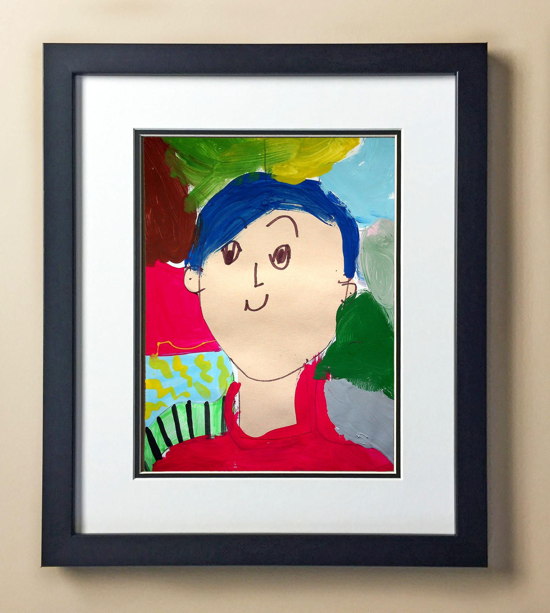 Included with the purchase is the Students Artwork, Frame, double matboard, shatter proof plexiglass, and a ready to hang backerboard with turnbuttons