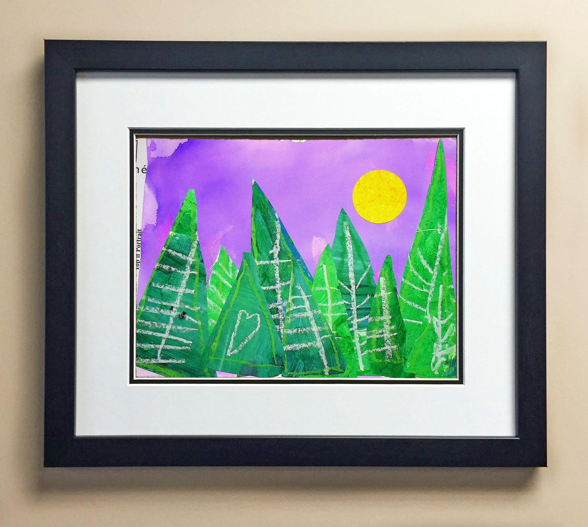 Included with the purchase is the Students Artwork, Frame, double matboard, shatter proof plexiglass, and a ready to hang backerboard with turnbuttons