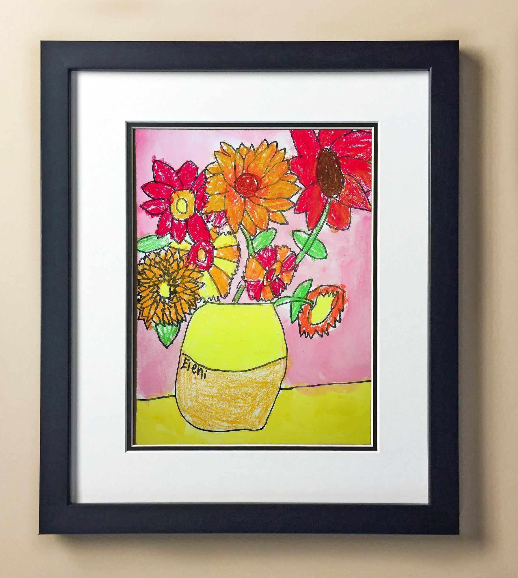 Included with the purchase is the Students Artwork, Frame, double matboard, shatter proof plexiglass, and a ready to hang backerboard with turnbuttons