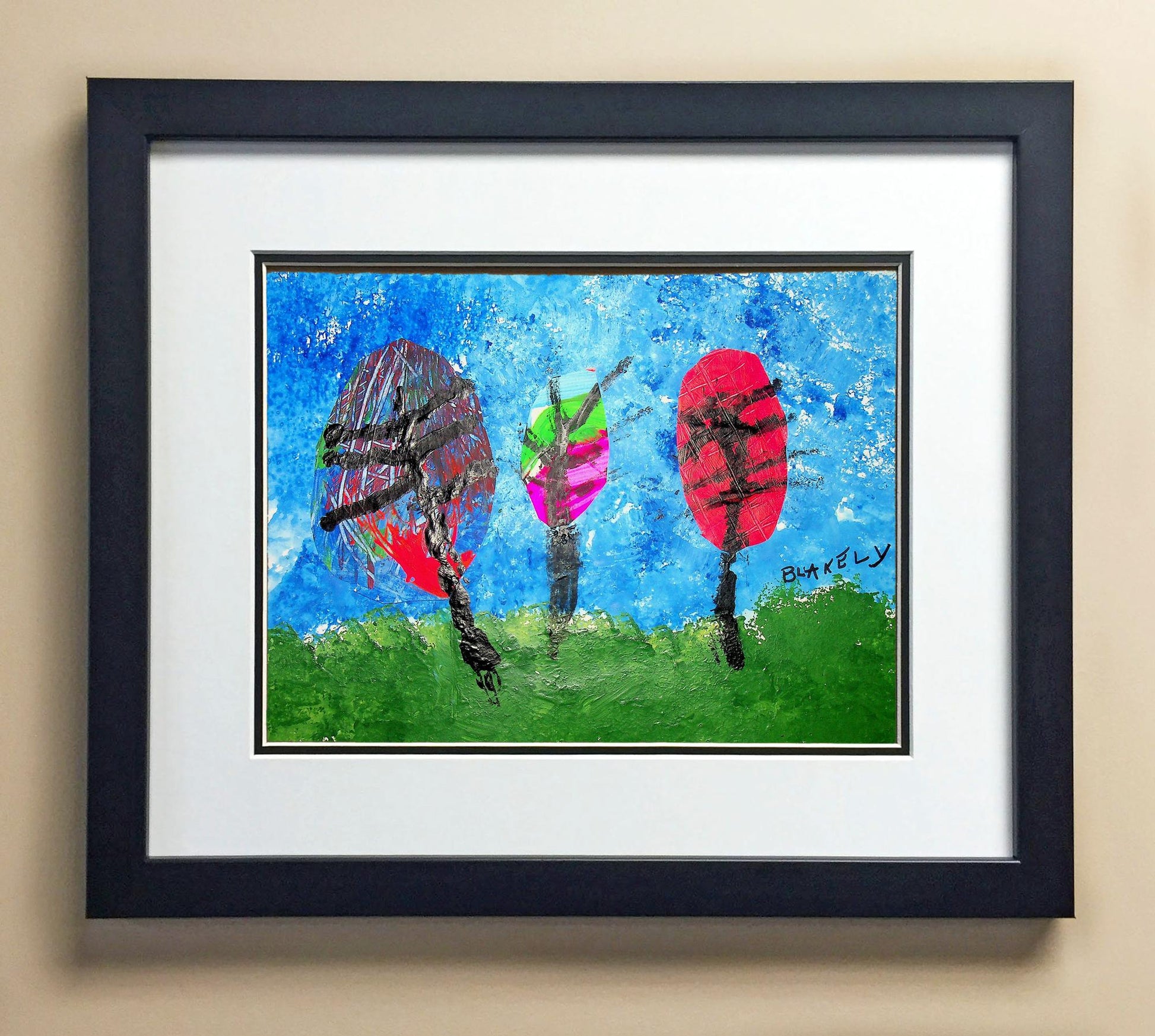 Included with the purchase is the Students Artwork, Frame, double matboard, shatter proof plexiglass, and a ready to hang backerboard with turnbuttons
