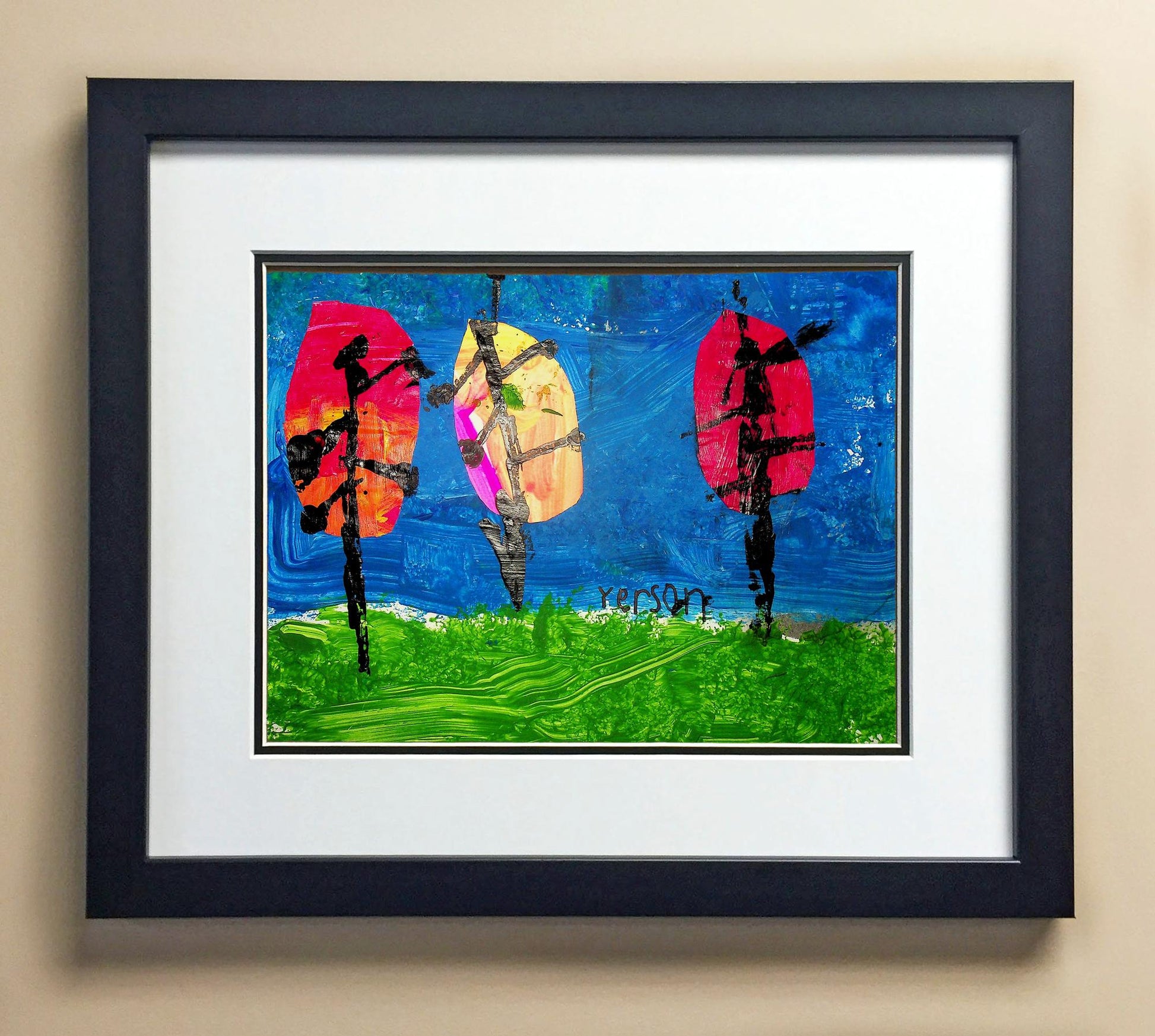 Included with the purchase is the Students Artwork, Frame, double matboard, shatter proof plexiglass, and a ready to hang backerboard with turnbuttons