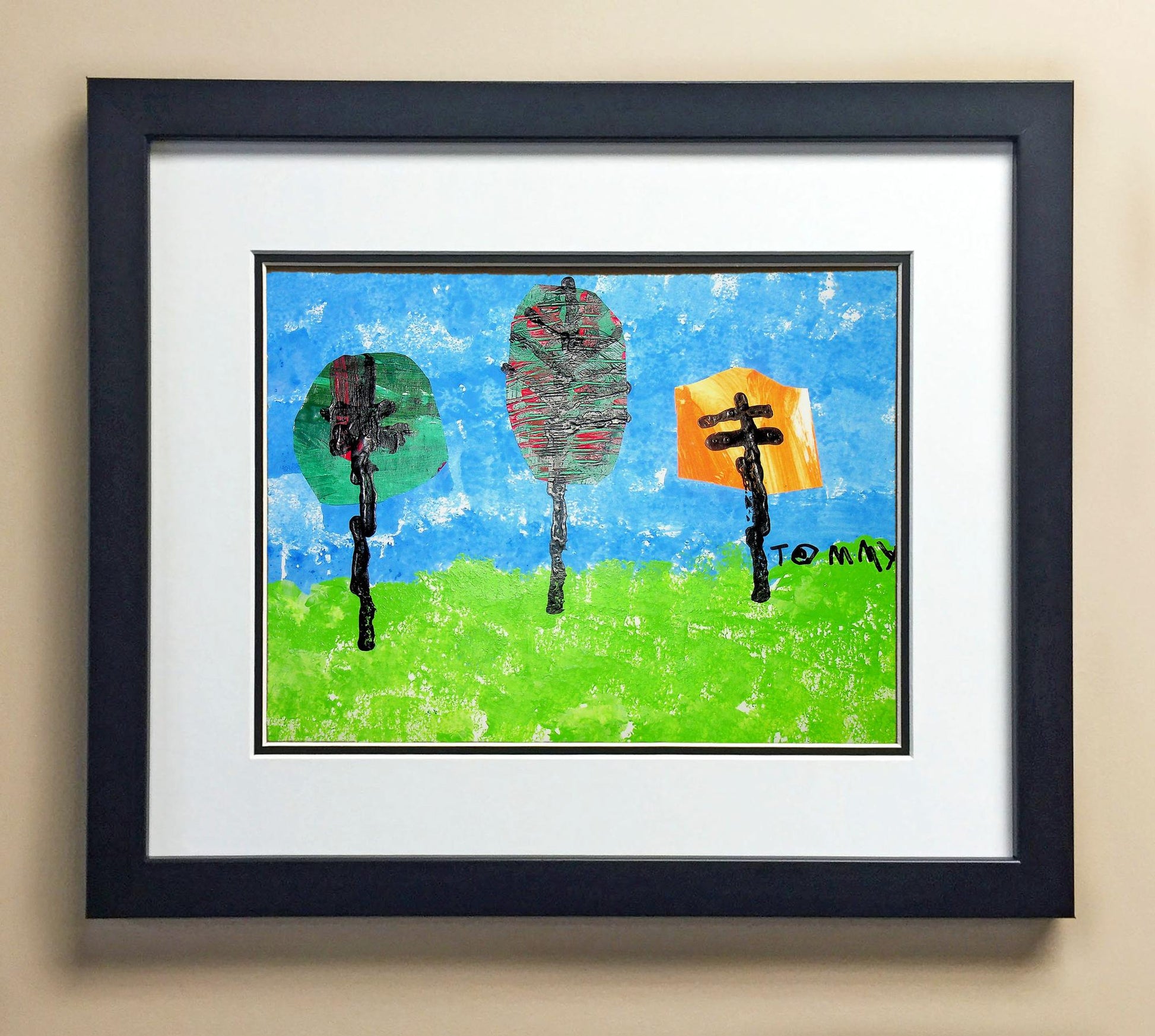 Included with the purchase is the Students Artwork, Frame, double matboard, shatter proof plexiglass, and a ready to hang backerboard with turnbuttons