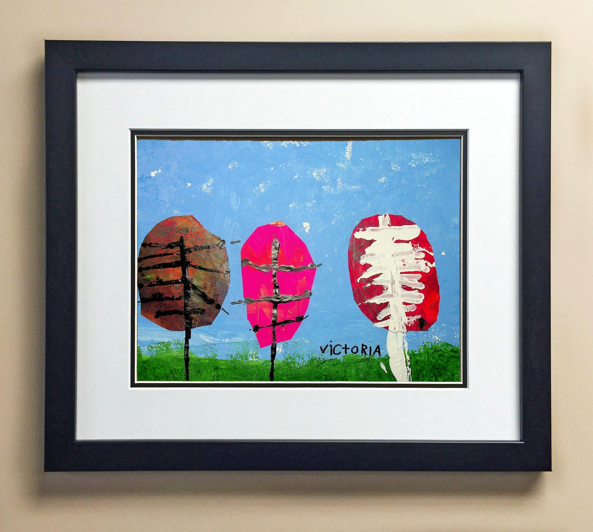 Included with the purchase is the Students Artwork, Frame, double matboard, shatter proof plexiglass, and a ready to hang backerboard with turnbuttons