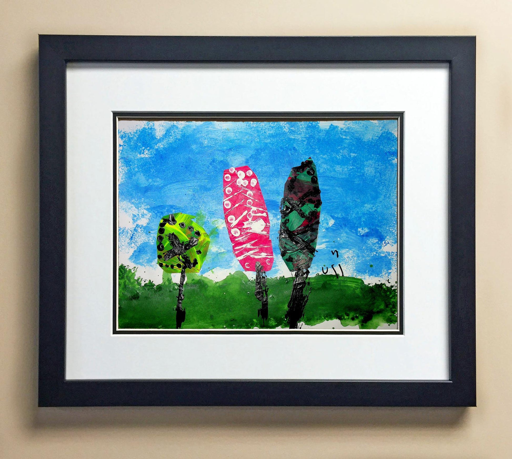 Included with the purchase is the Students Artwork, Frame, double matboard, shatter proof plexiglass, and a ready to hang backerboard with turnbuttons