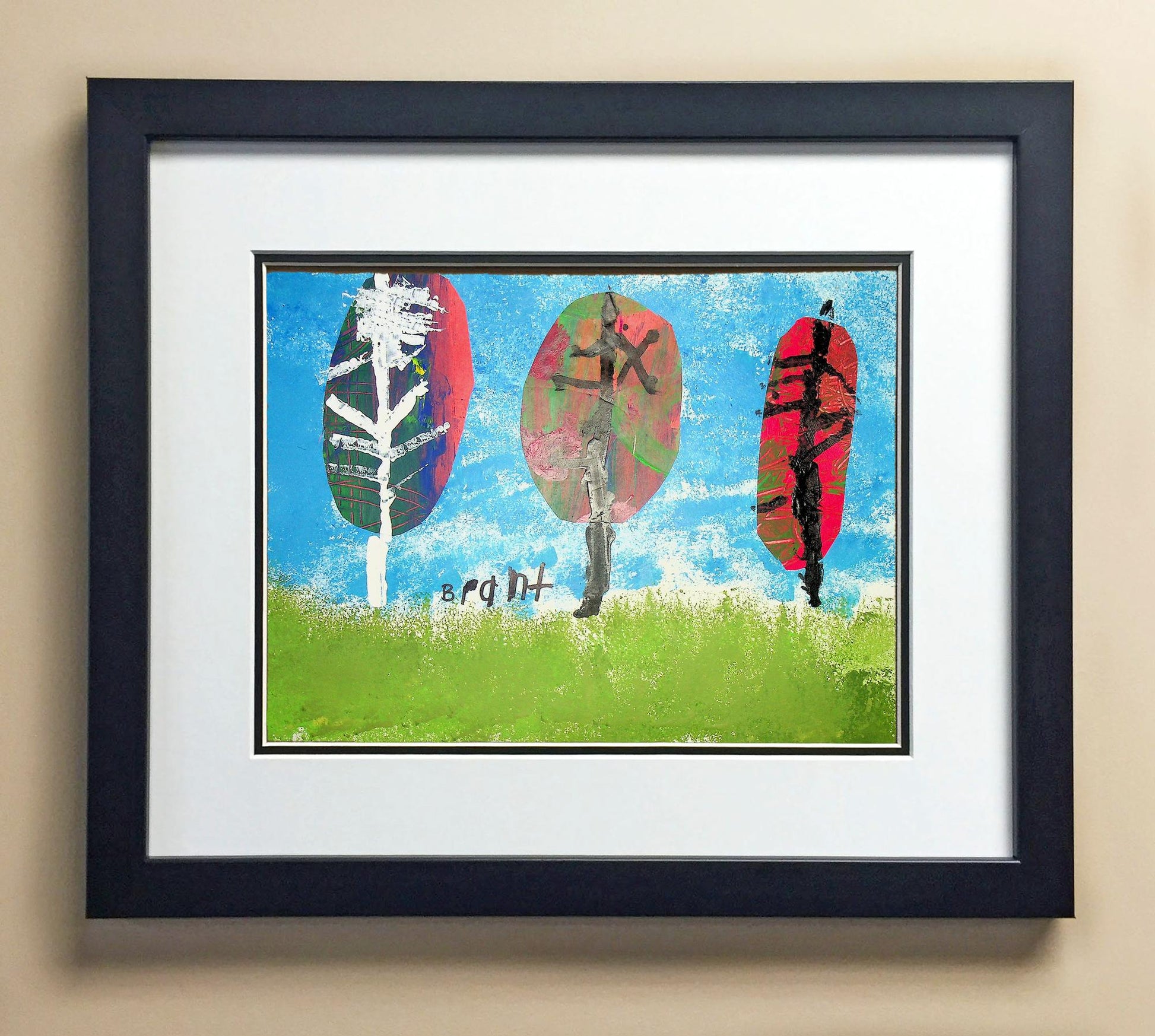 Included with the purchase is the Students Artwork, Frame, double matboard, shatter proof plexiglass, and a ready to hang backerboard with turnbuttons