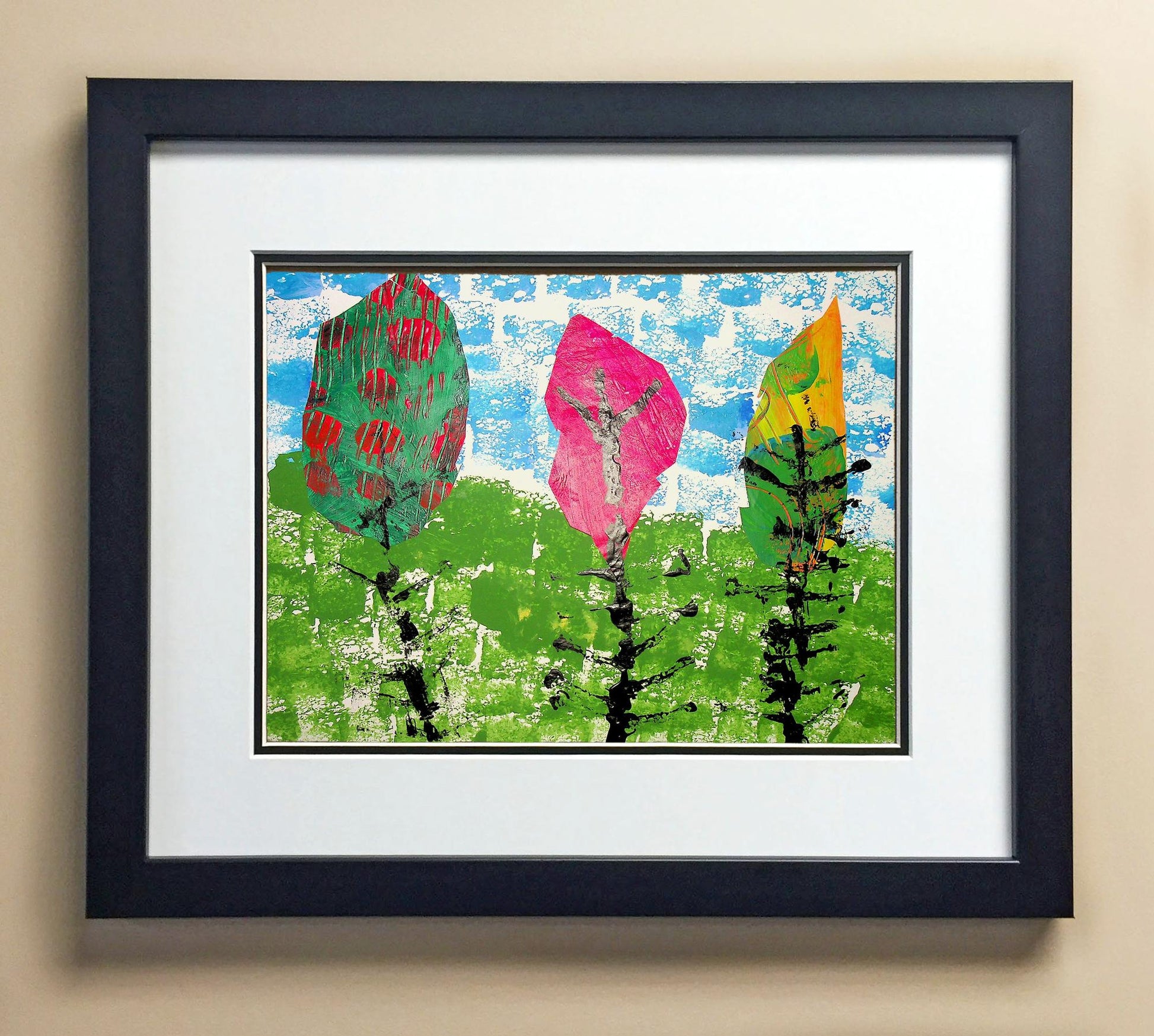 Included with the purchase is the Students Artwork, Frame, double matboard, shatter proof plexiglass, and a ready to hang backerboard with turnbuttons