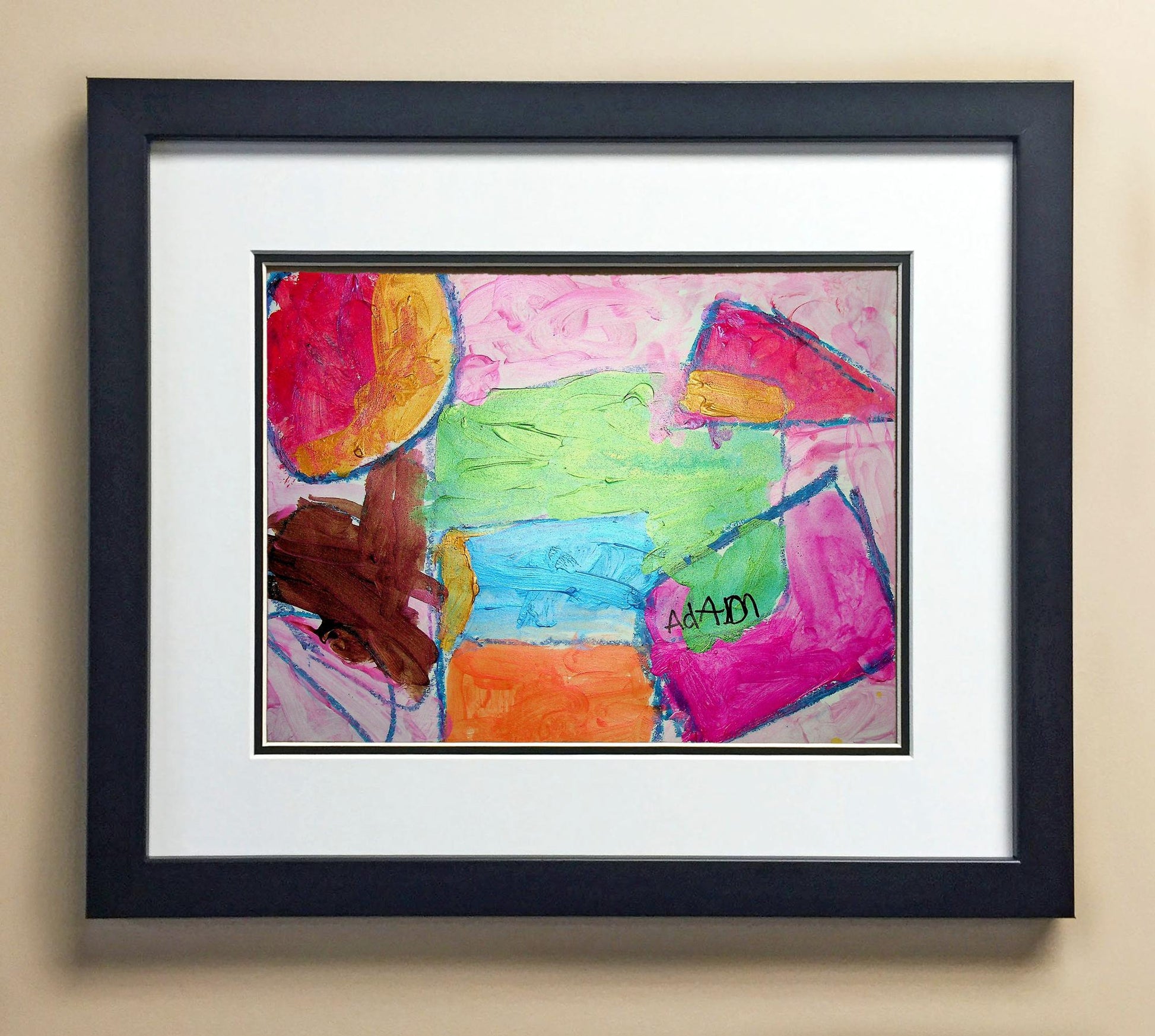 Included with the purchase is the Students Artwork, Frame, double matboard, shatter proof plexiglass, and a ready to hang backerboard with turnbuttons