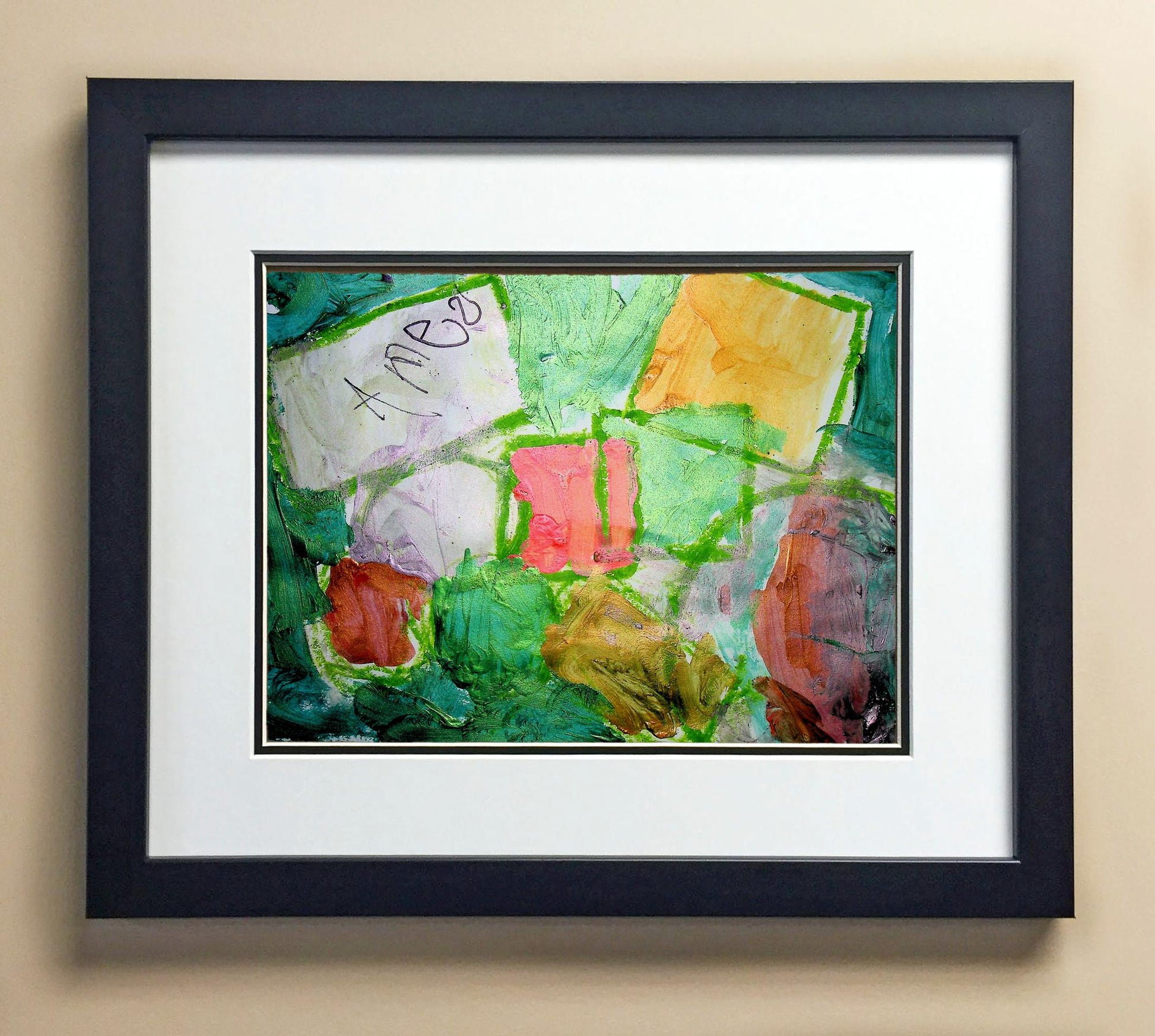 Included with the purchase is the Students Artwork, Frame, double matboard, shatter proof plexiglass, and a ready to hang backerboard with turnbuttons