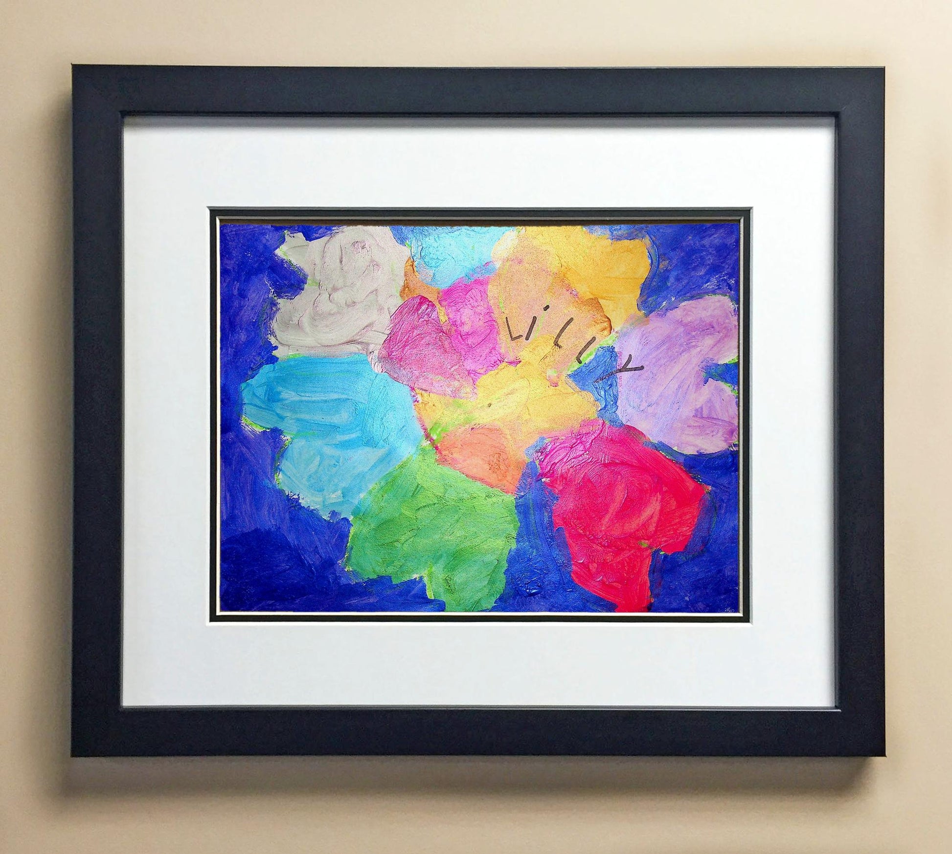 Included with the purchase is the Students Artwork, Frame, double matboard, shatter proof plexiglass, and a ready to hang backerboard with turnbuttons