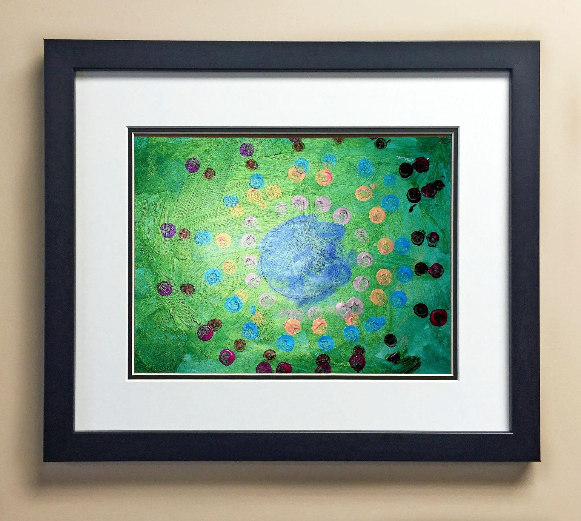 Included with the purchase is the Students Artwork, Frame, double matboard, shatter proof plexiglass, and a ready to hang backerboard with turnbuttons