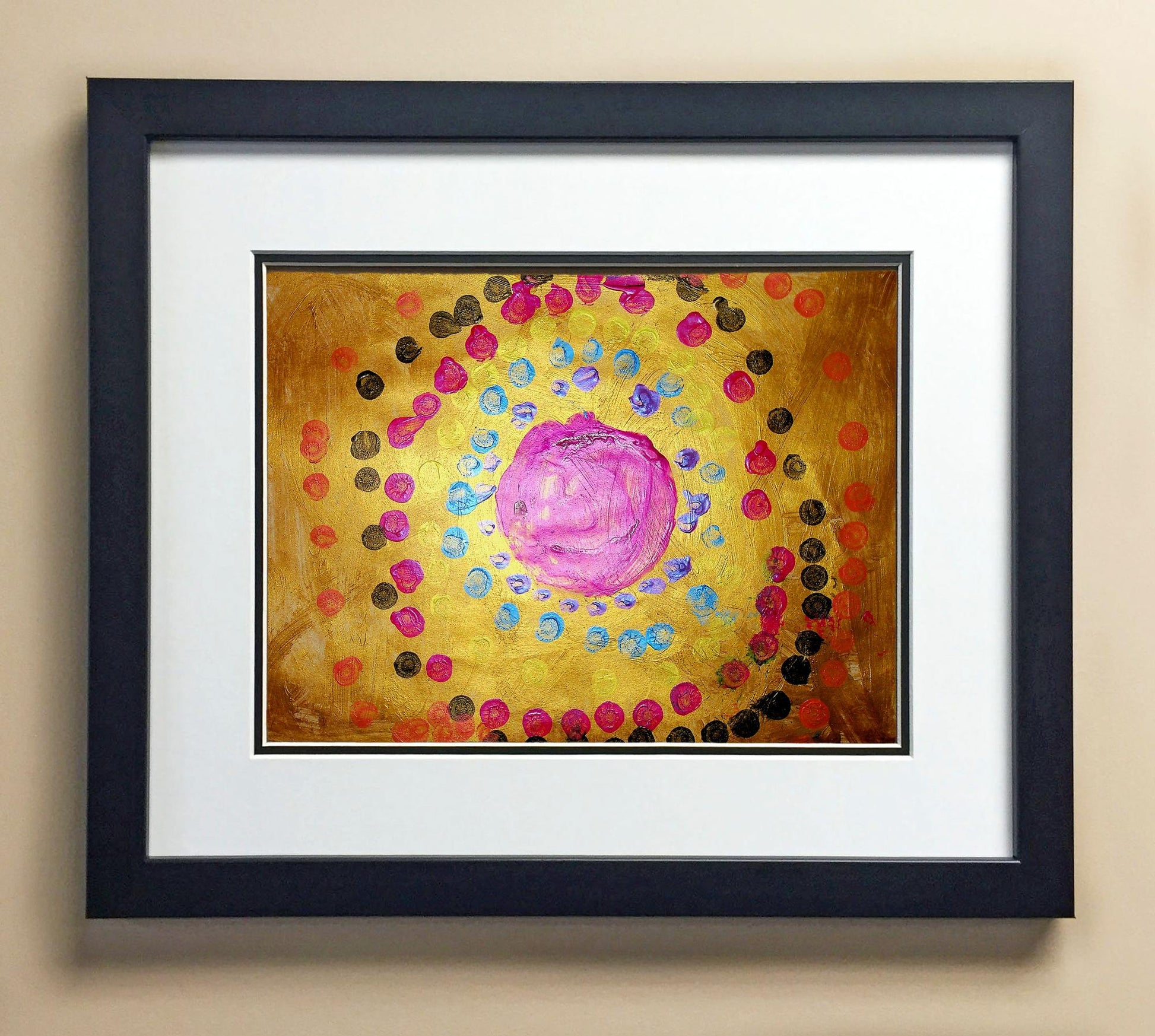 Included with the purchase is the Students Artwork, Frame, double matboard, shatter proof plexiglass, and a ready to hang backerboard with turnbuttons