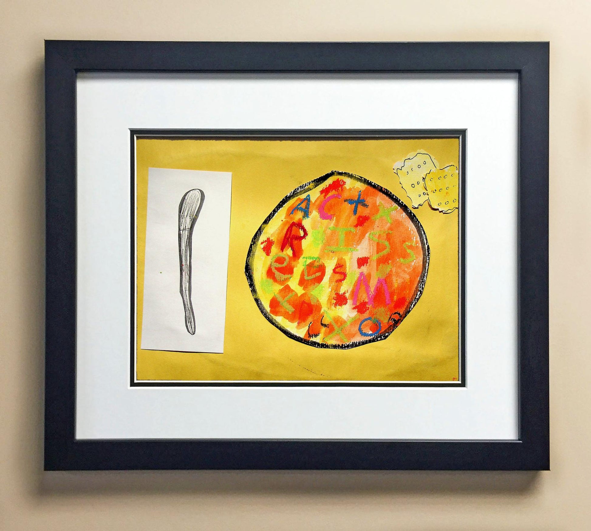Included with the purchase is the Students Artwork, Frame, double matboard, shatter proof plexiglass, and a ready to hang backerboard with turnbuttons