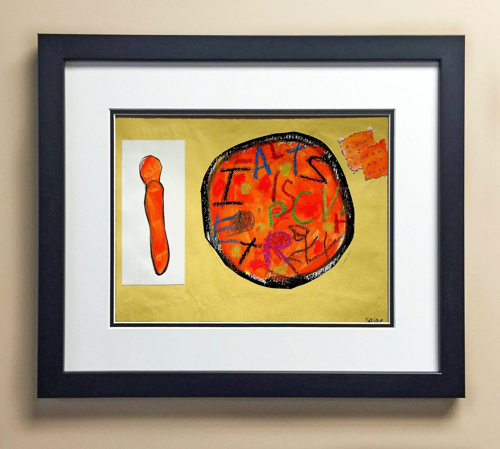 Included with the purchase is the Students Artwork, Frame, double matboard, shatter proof plexiglass, and a ready to hang backerboard with turnbuttons