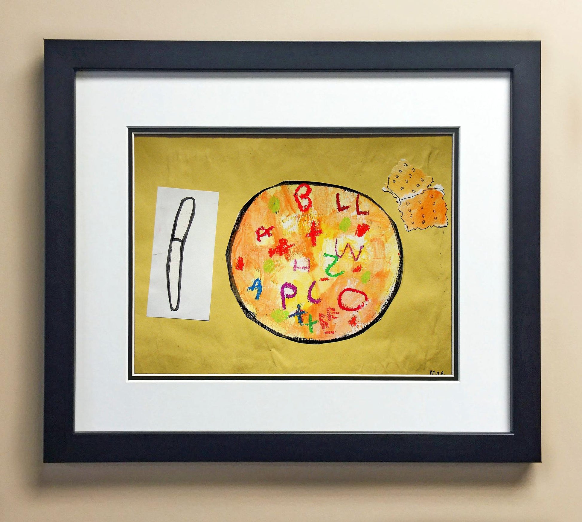 Included with the purchase is the Students Artwork, Frame, double matboard, shatter proof plexiglass, and a ready to hang backerboard with turnbuttons