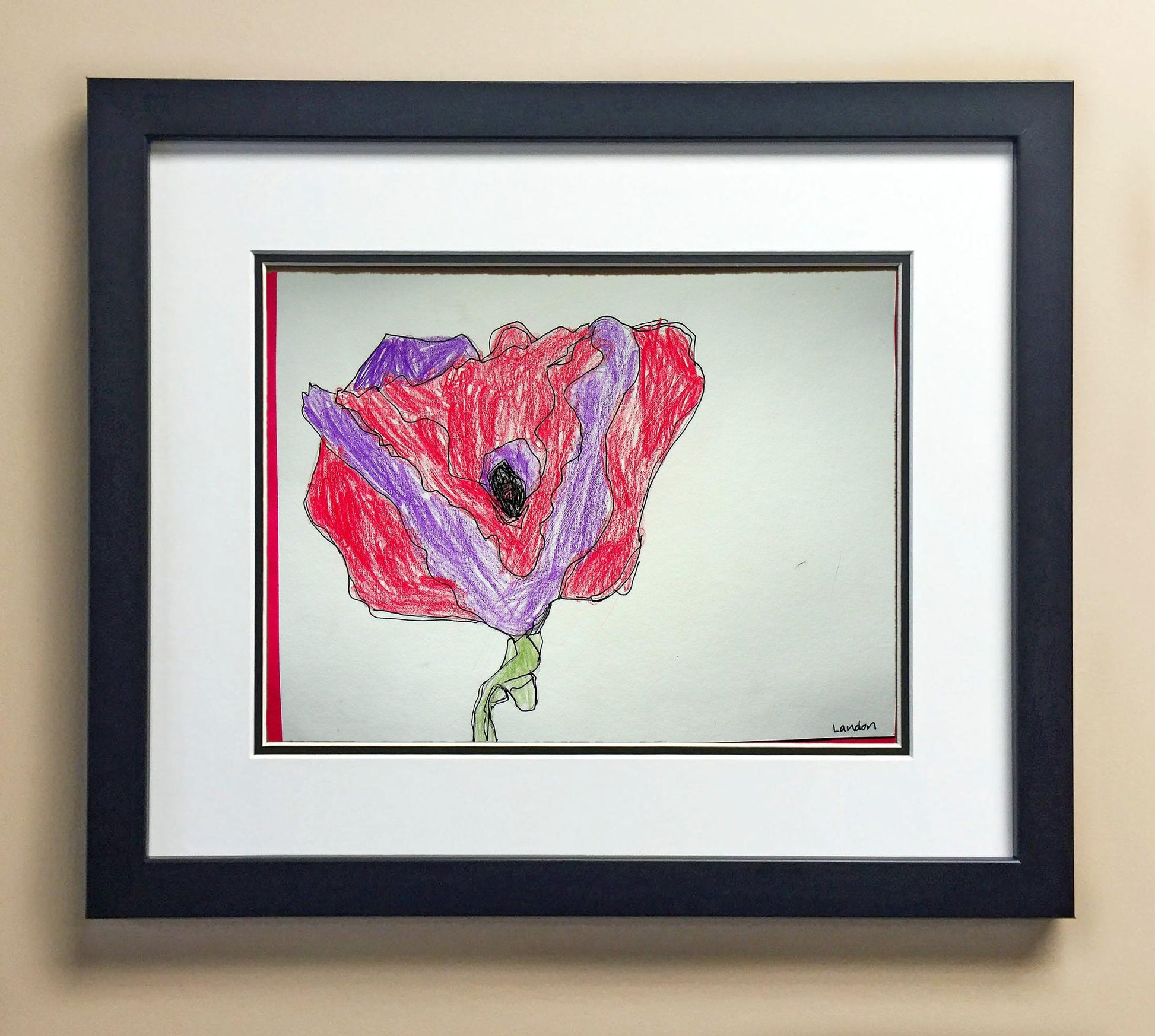 Included with the purchase is the Students Artwork, Frame, double matboard, shatter proof plexiglass, and a ready to hang backerboard with turnbuttons