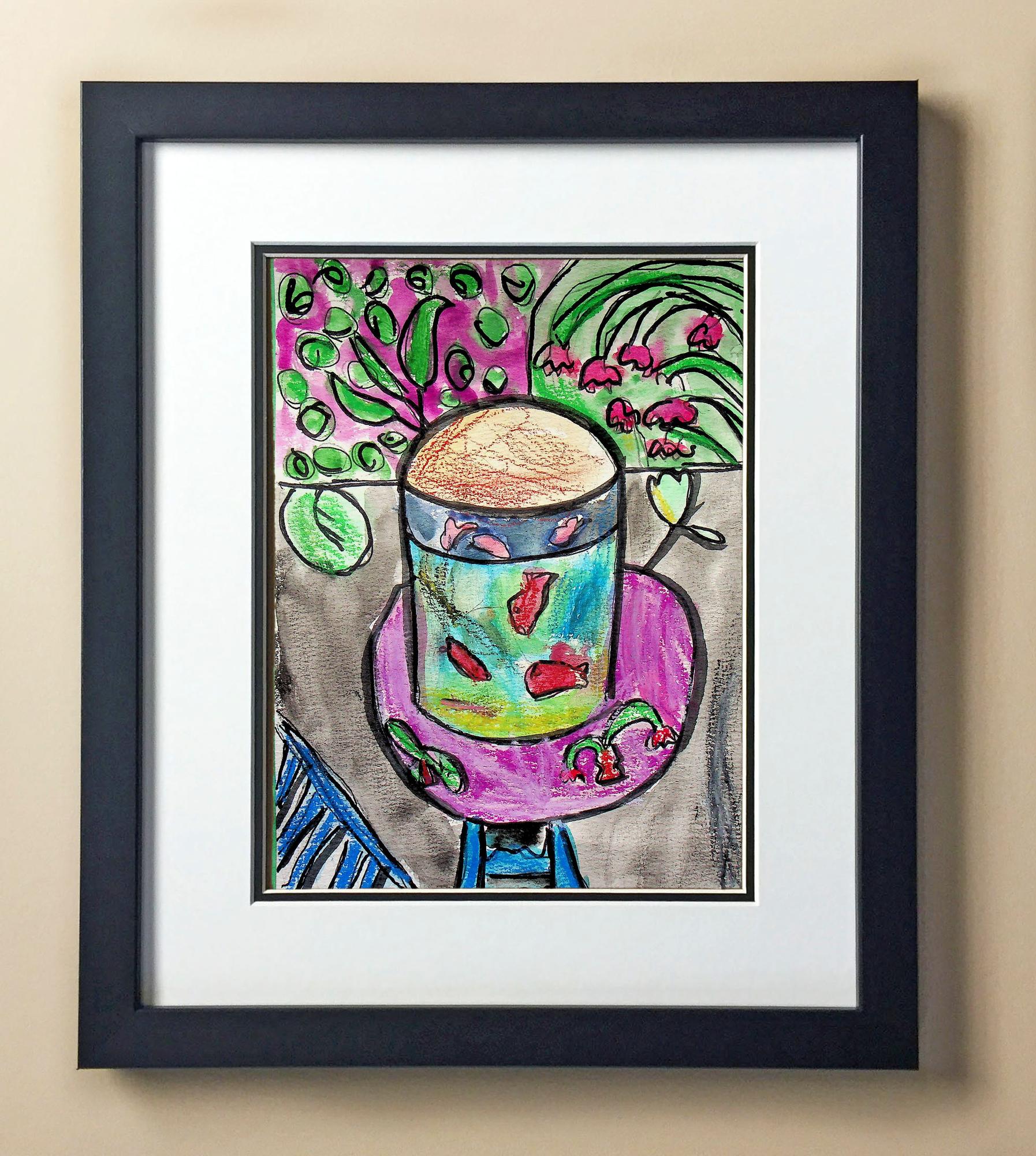Included with the purchase is the Students Artwork, Frame, double matboard, shatter proof plexiglass, and a ready to hang backerboard with turnbuttons
