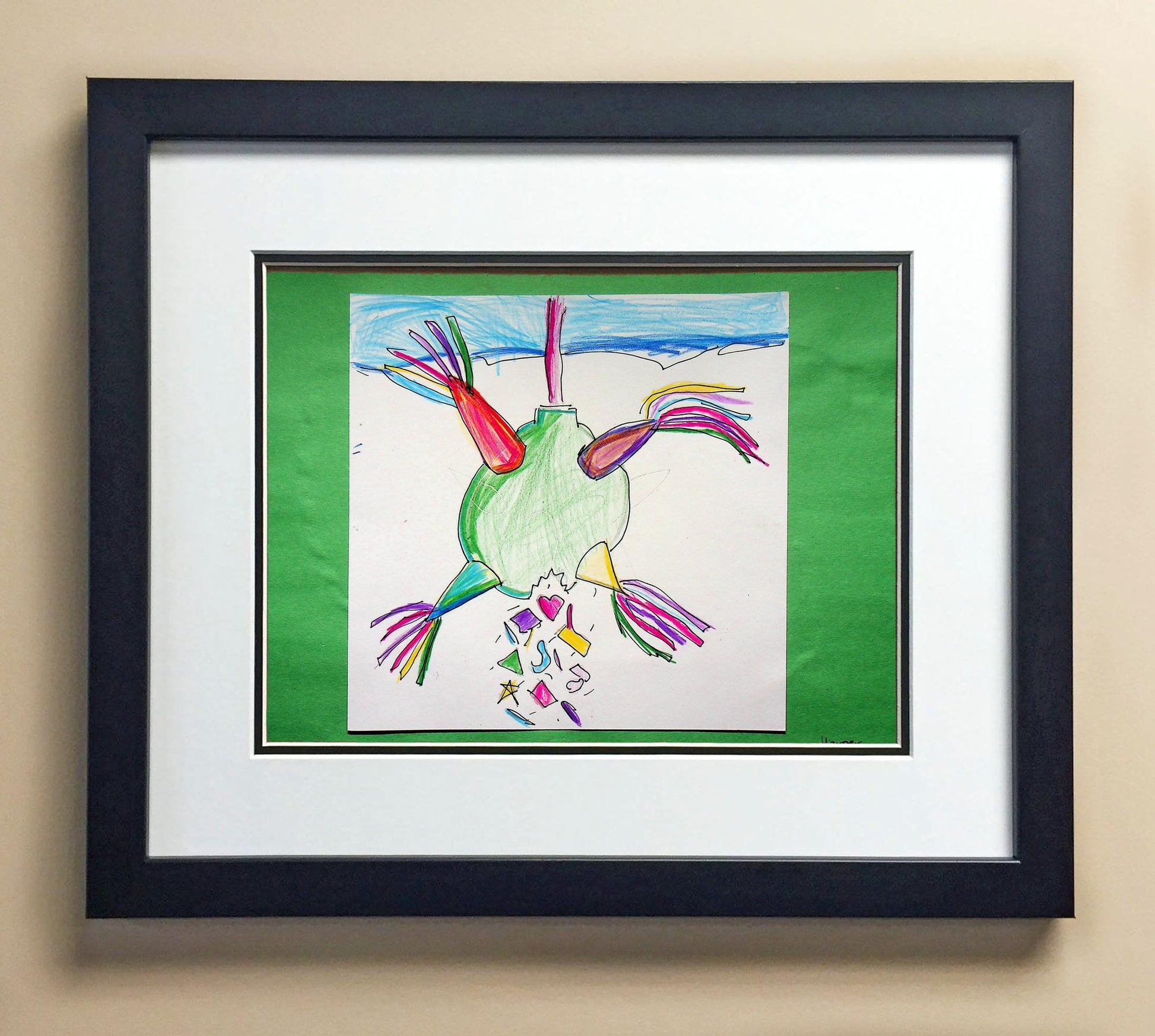 Included with the purchase is the Students Artwork, Frame, double matboard, shatter proof plexiglass, and a ready to hang backerboard with turnbuttons