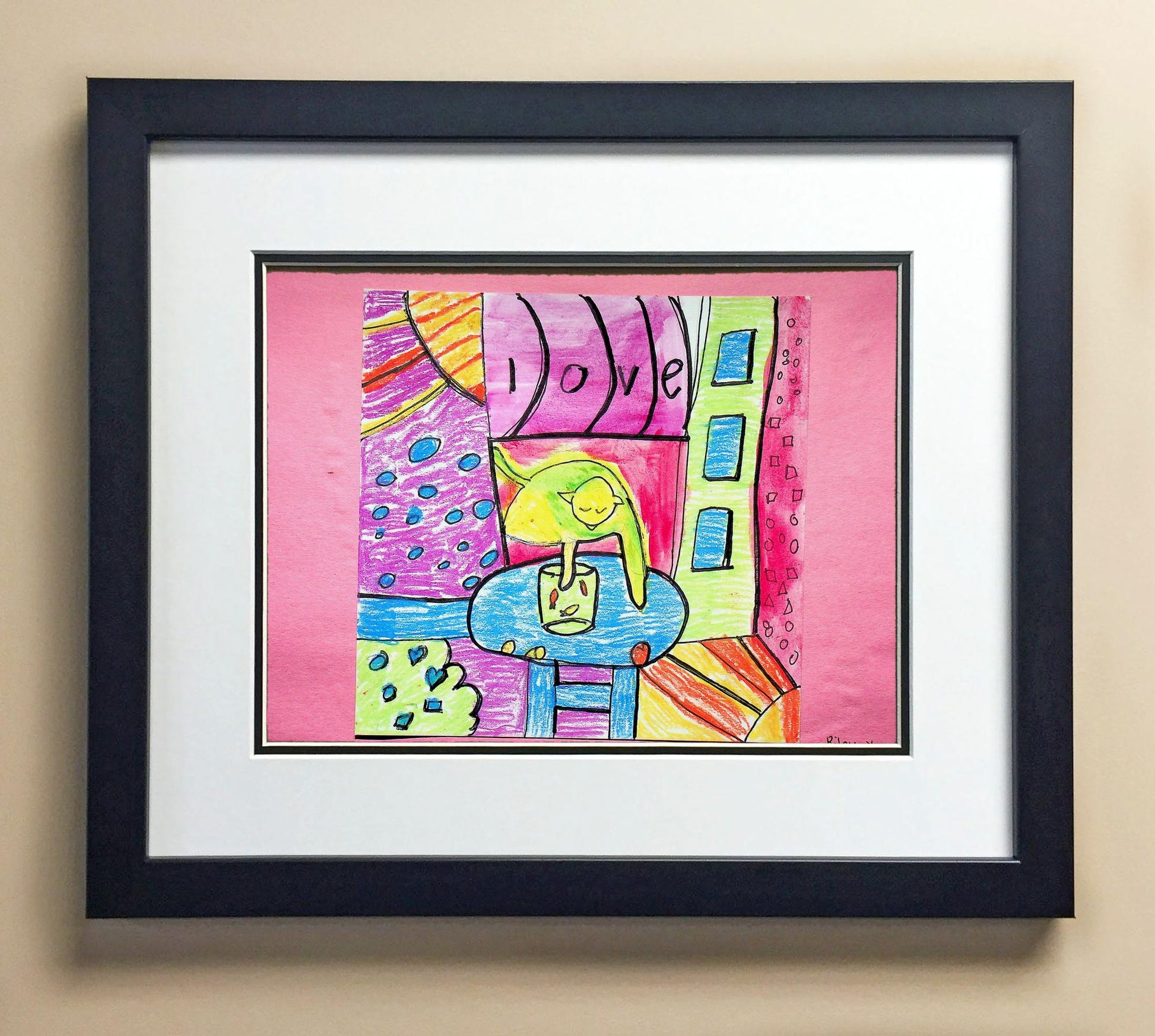 Included with the purchase is the Students Artwork, Frame, double matboard, shatter proof plexiglass, and a ready to hang backerboard with turnbuttons