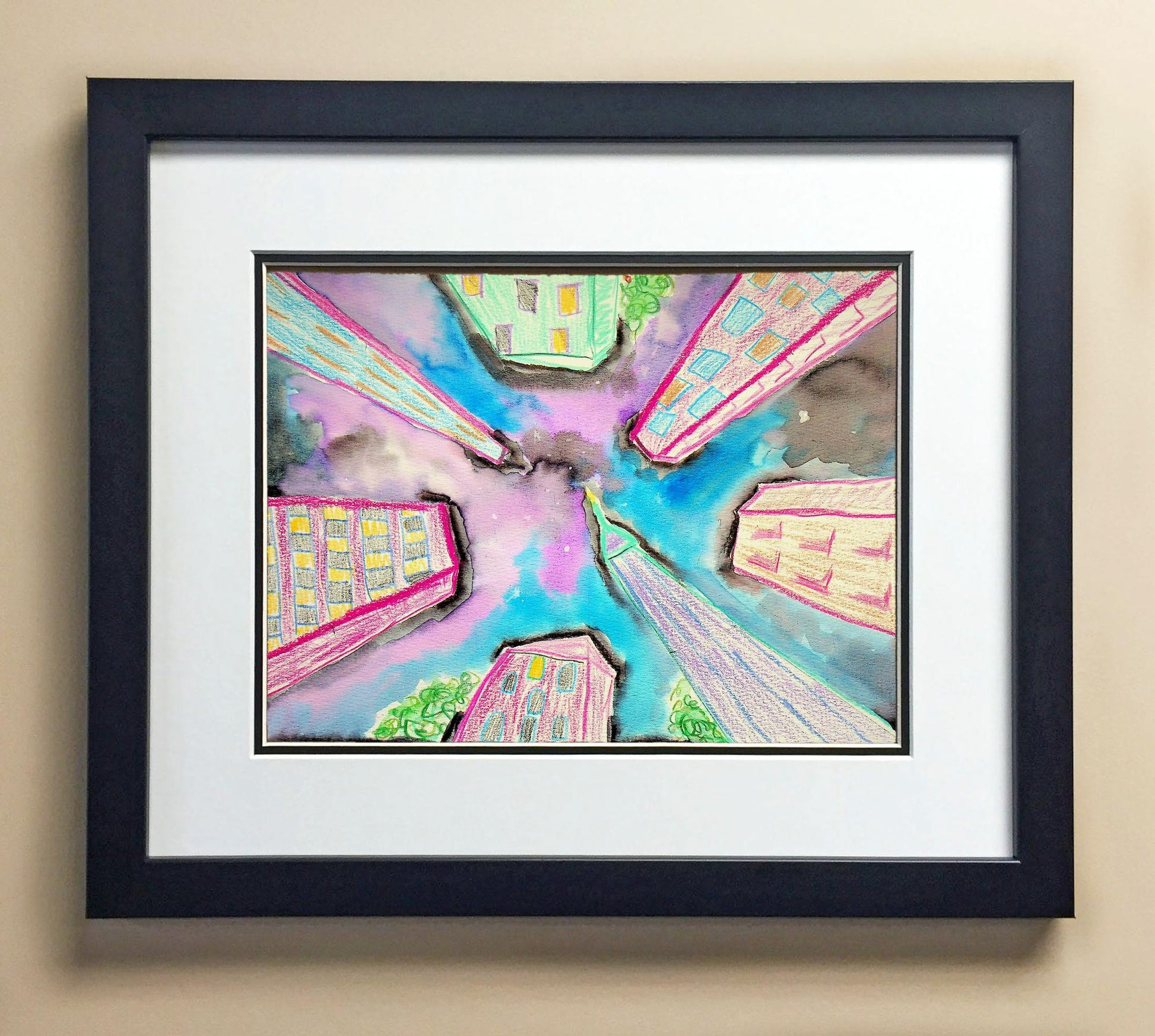 Included with the purchase is the Students Artwork, Frame, double matboard, shatter proof plexiglass, and a ready to hang backerboard with turnbuttons